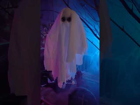 Ovaj drhtavi dekoracija duhova za objesiti animirane i glazbene mjere visoke otprilike 48 cm. Ovaj duh za objesiti je bijele boje s crnim plastičnim očima. Stisak na vrhu ukrasa lako će ga objesiti. Zahvaljujući dvije AA (nisu uključene) baterije, duh će uplašiti one oko vas zahvaljujući buci koju odaje! Donesite ovaj animirani ukras tijekom večeri Noći vještica!