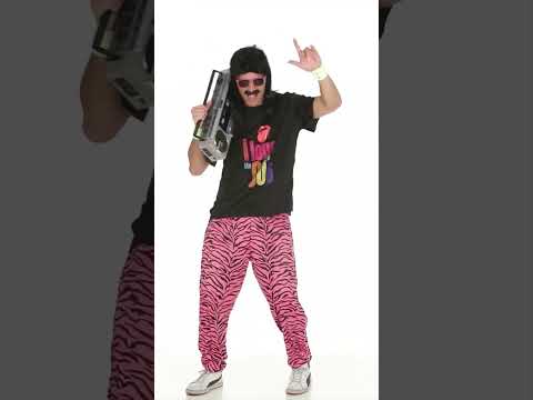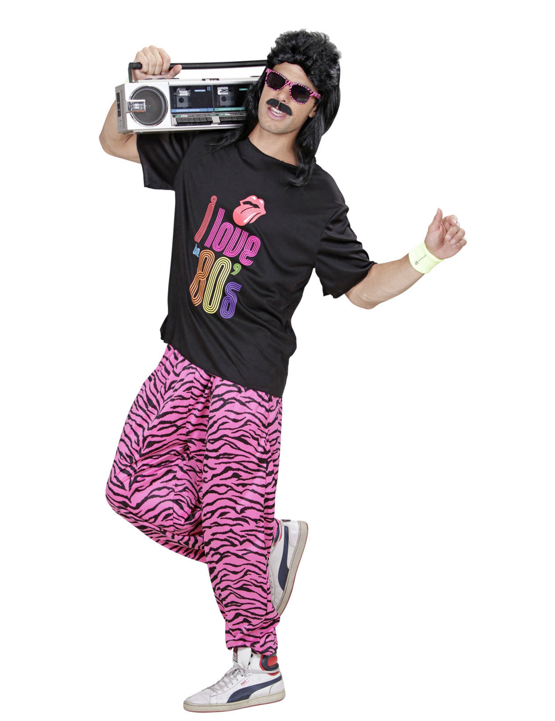 Ovo jogging prerušavanje volim 80 -ih je za velike muškarce. Sastoji se od majice i hlača. Skup cjeline je crn i nosi natpis "Volim 80 -ih". Kostim prati velike ružičaste i crne hlače od zebre zbog kojih neće biti neopaženo! Ovaj će kostim biti saveznik izbora za večer disko ili kiča!