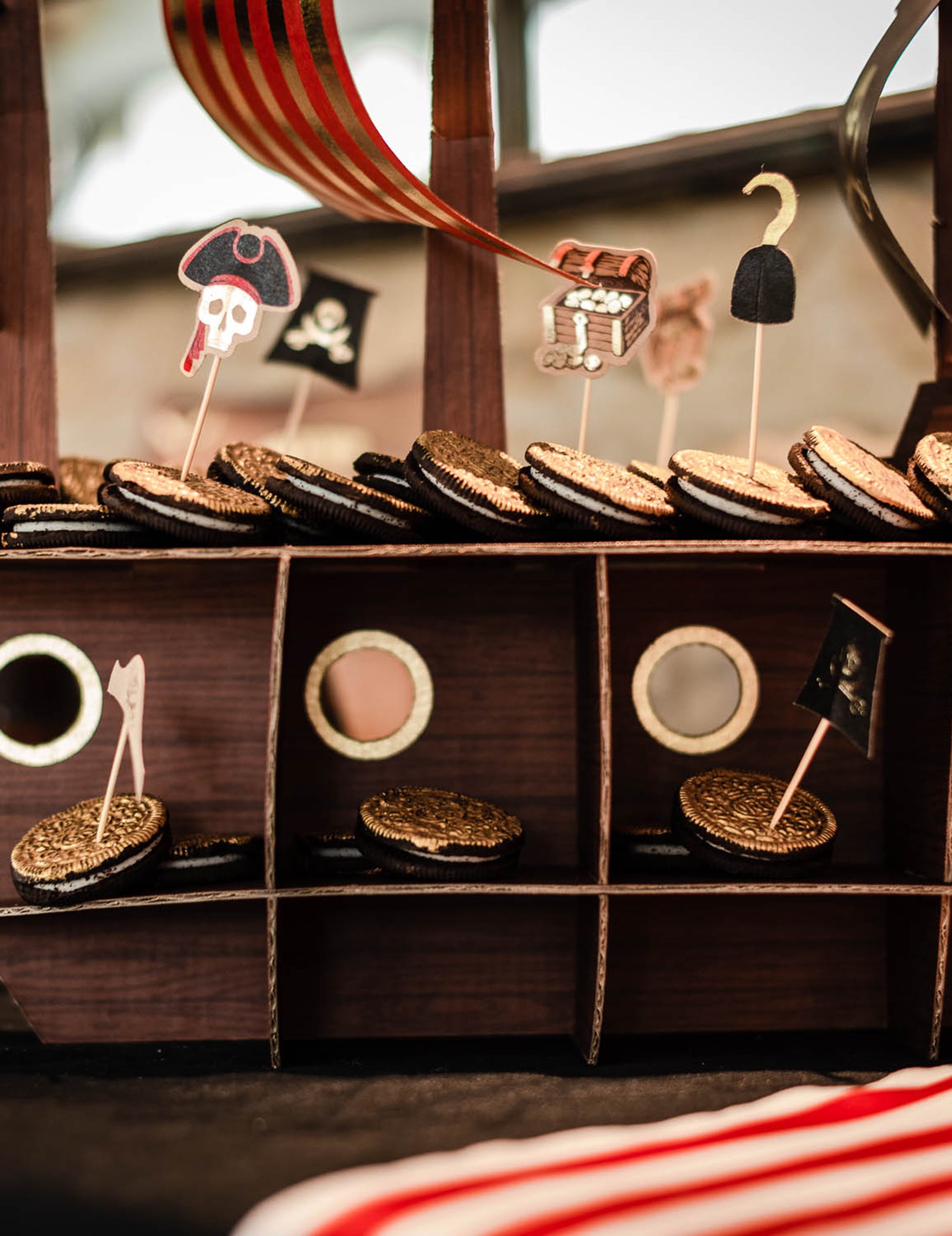 Ovih 10 vrhova gusarskog kolača mjeri otprilike 9 cm. Svaka od njih ima kartonsku naljepnicu koja predstavlja blago, kuku, lubanju koja nosi tricorne, gusarsku zastavu i šešir. Unesite svoje kolače i druge delicije s ovih vrhova kako biste organizirali pravi gusarski zalogaj povodom rođendana!