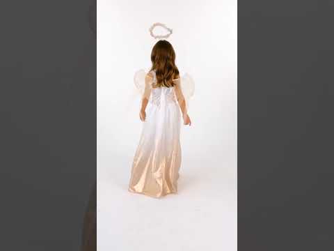 Ovaj kostim ružičastog anđela namijenjen je djevojkama. Uključuje haljinu, kapu i par krila. Duga haljina nema rukave. Zlatno ružičaste boje u cjelini sa satenom i sjajnim efektom! Poprsje je zlatna boja i ima sjajan učinak. Kostim će imati par bijelih boja koje će se lako pričvrstiti na stražnju stranu. Konačno, pokrivač odgovara traci za glavu. Predstavlja lijepu orroolu. Dovršite svoj anđeoski outfit povodom nove godine ili za karneval!