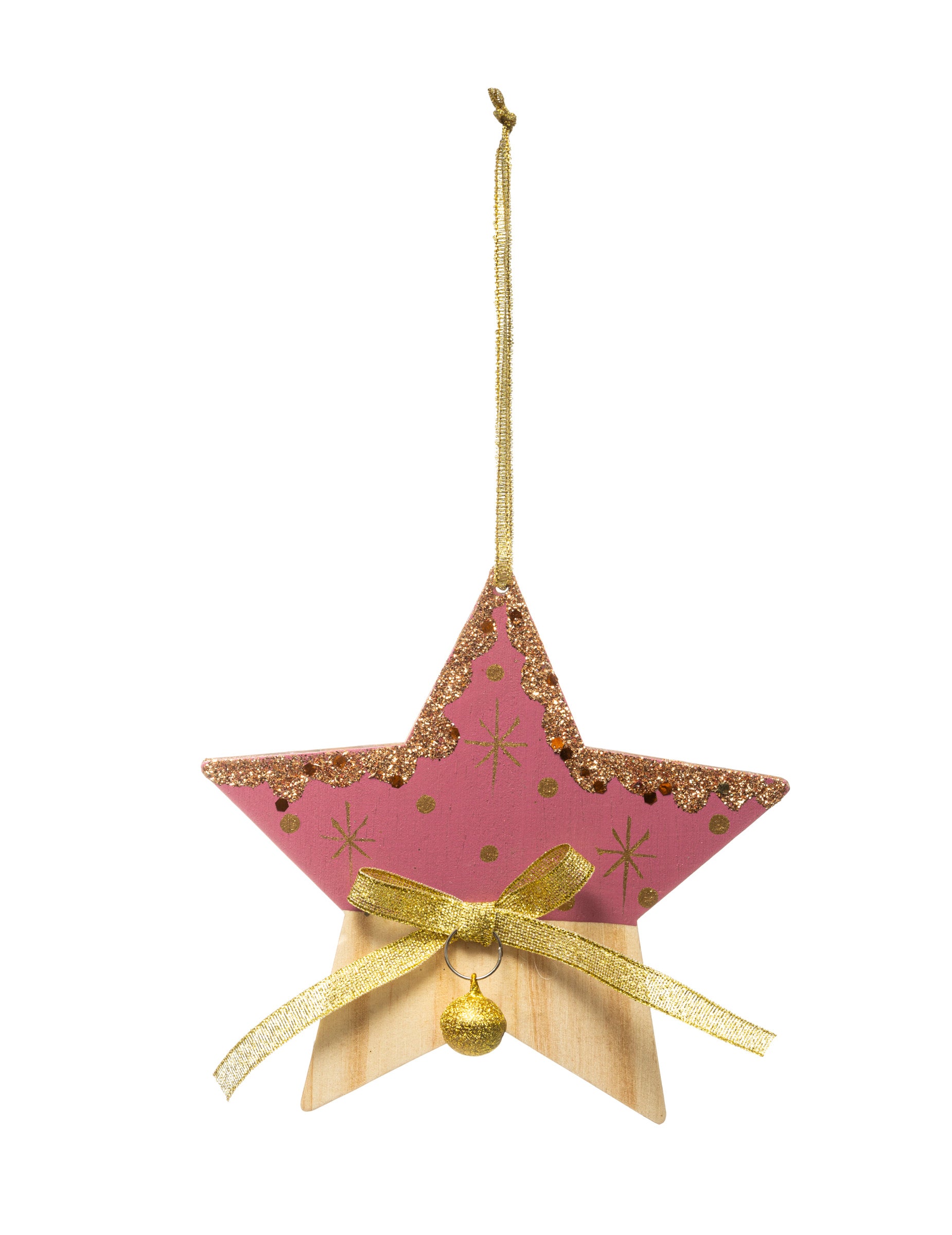 Viseća svjetiljka s ružičastom zvijezdom i drvom 20 cm sa zlatnim uzorcima