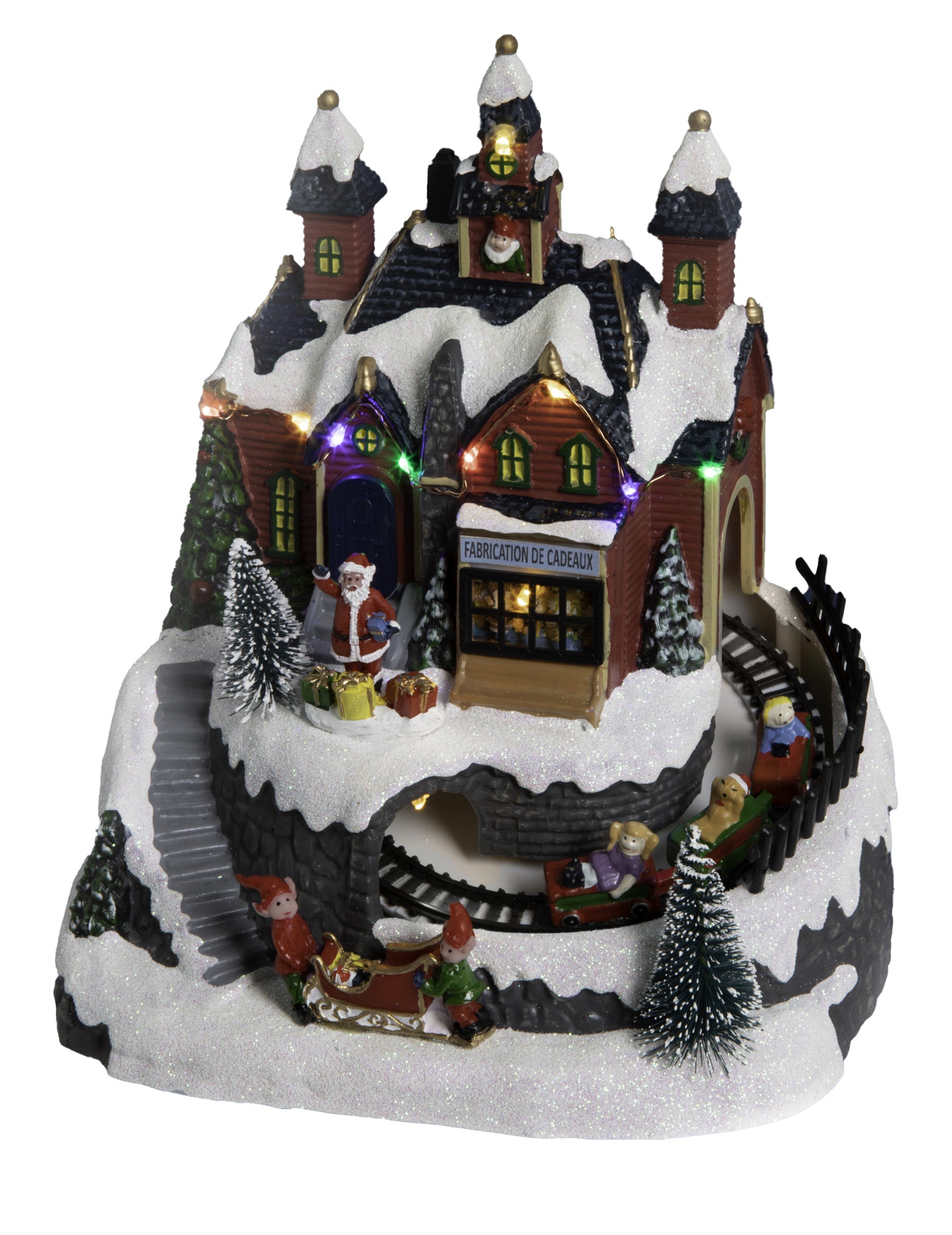Ovaj ukrasni predmet svijetlo I mjuzikl nudi funkciju animiranog pokreta. U ovom zimskom okruženju naći ćete jele kao i Djeda Mrazovi vilenjaci zauzet pripremom daroviRadionica blista zahvaljujući... vodio višebojna integrirana svjetla za osvježenje vašeg interijera.