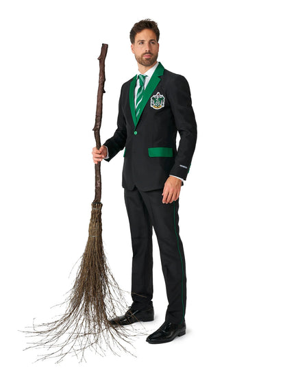 Ovaj odrasli g. Slytherin Slytherin kostim je pod službenom licencom Suitheister. Uključuje jaknu, hlače i kravatu. Jakna je crna i opremljena je vratnim vratom i lažnim džepovima u bojama poznate škole Slytherin je zelena. Lako će se zatvoriti zahvaljujući dva zelena plastična gumba. Također je ukrašen službenim logotipom Slytherina, ušivenom izravno na lijevom dijelu jakne na razini prsa. Crne hlače ugodne su za nošenje, opremljene s dva bočna džepa i zatvorit će se pomoću gumba i zatvarača. Sa strane ima finu zelenu granicu boje. Što se tiče kravata, ona je prugasta zelena i bijela boja. Jednostavno će vam se vezati oko vrata kako bi dovršila ovaj elegantni kostim! Ova maskiranje gospodina Slytherina bit će savršena za šik prikrivenu večer na temu poznate čarobnjačke škole tijekom karnevala ili za Noć vještica!