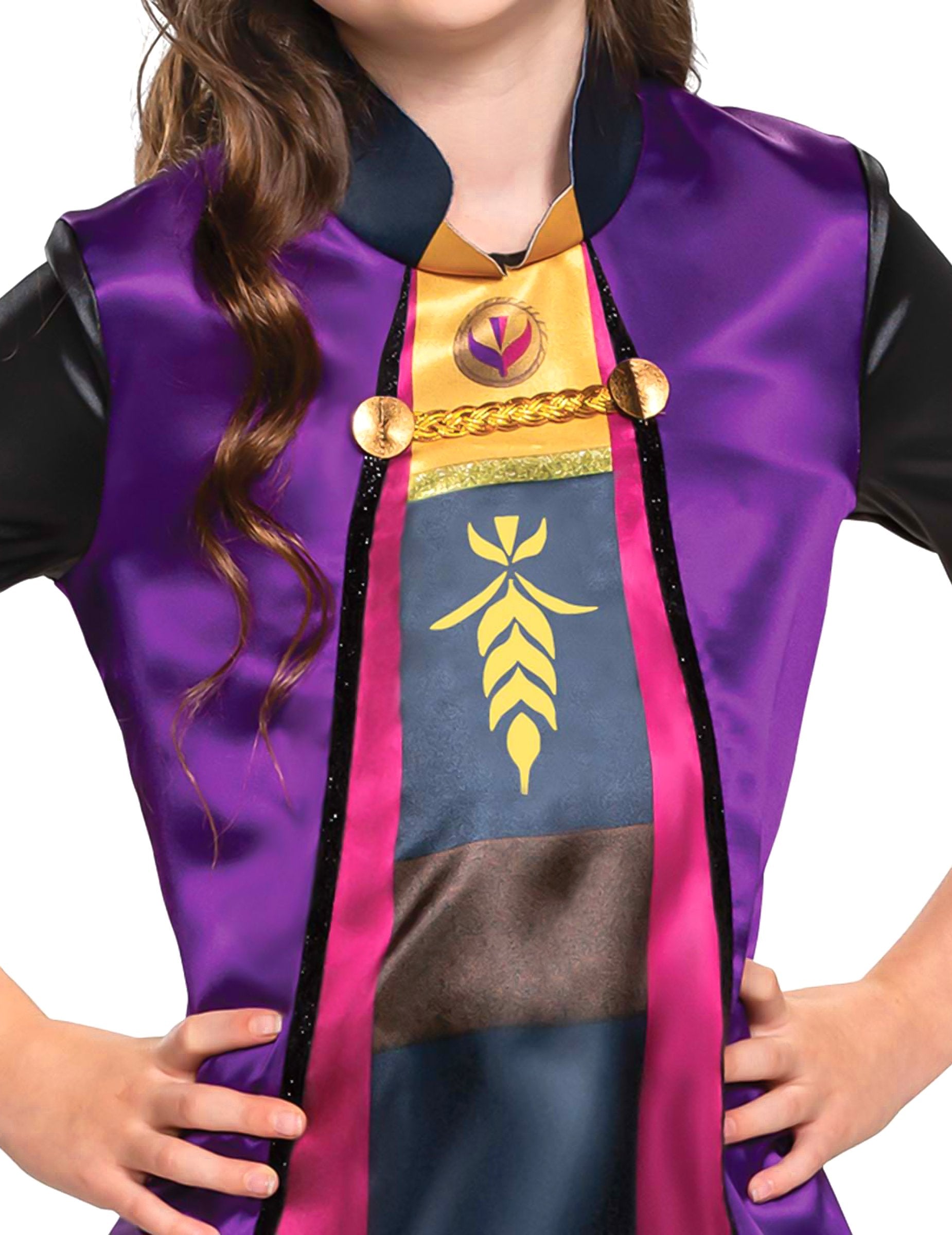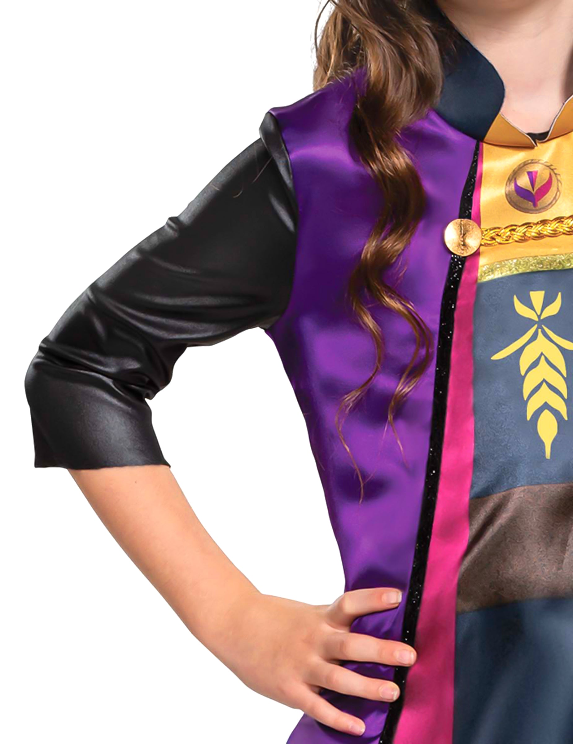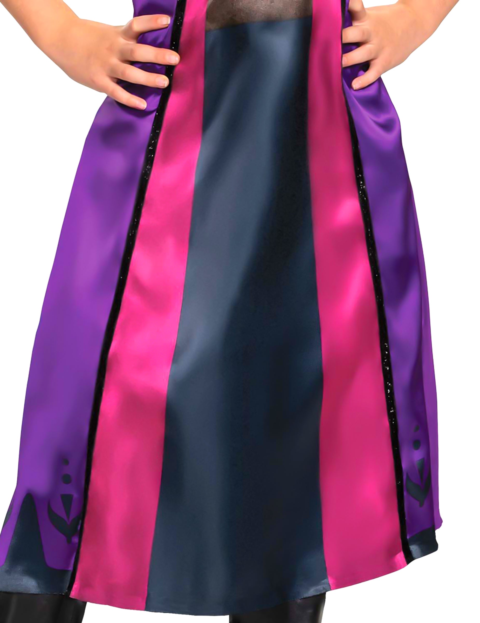 Ova Annina prerušavanje za djevojku pod službenom je licencom Snježna kraljica. Uključuje samo haljinu. Kostimna haljina ima pola dugih rukava. Ljubičasta je, crne i ružičaste boje. Karakteriziraju ga šareni uzorci, s ušima pšenice kao i lažnim vretenom, zlatnom bojom. Haljina ima mali crni ovratnik u boji. Ovaj kostim Anna usrećit će vaše dijete tijekom rođendana ili za karneval!