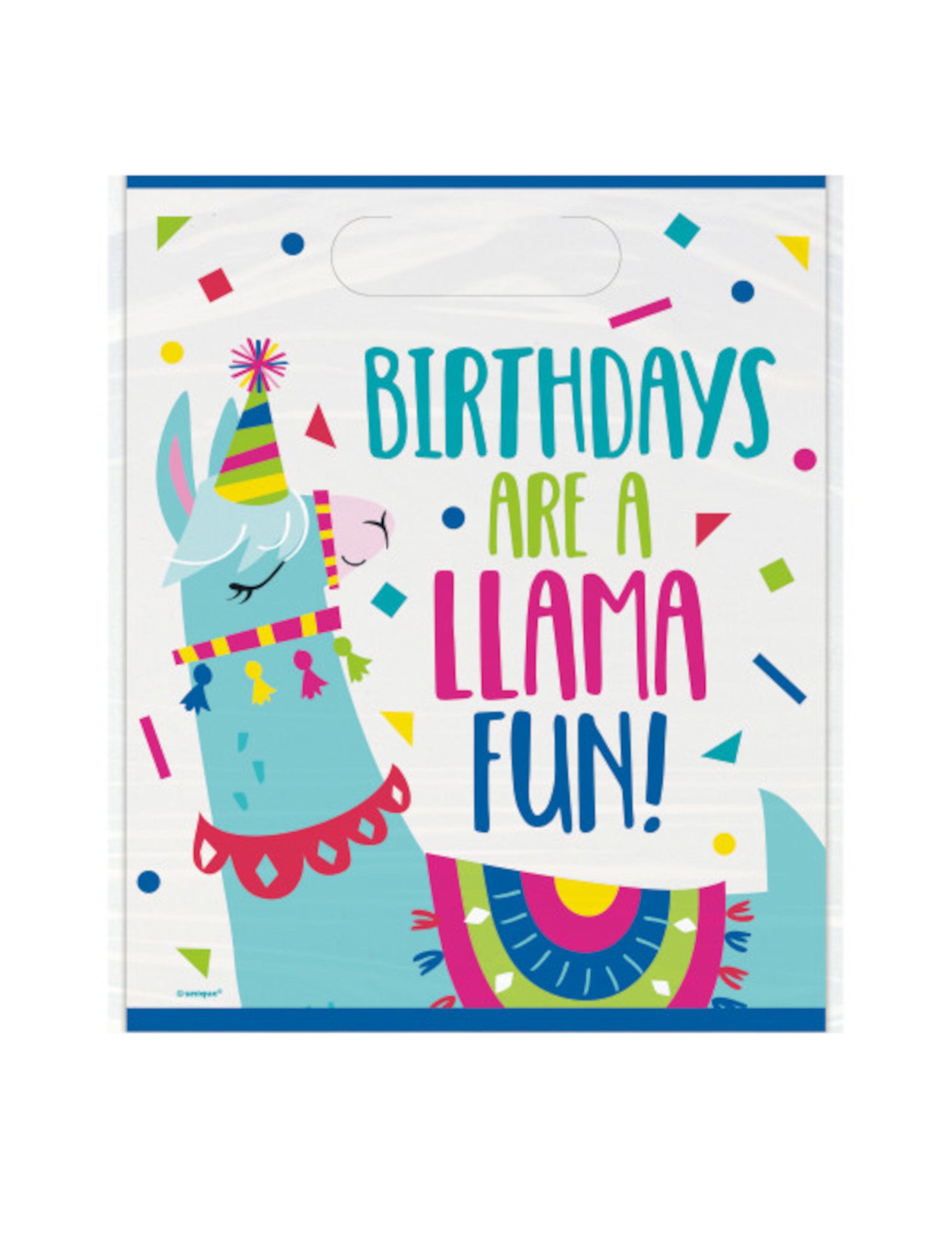 Poklonite ovih 8 plastičnih vrećica za zabavu svojim malim gostima. S dizajnom višebojni Na bijeloj pozadini posutoj konfetima, svaka vrećica prikazuje lama Zabavna plava s blagdanskom porukom 'Rođendani su prava zabava!'. Ove posude idealan su dodatak za dijeljenje poslastica tijekom rođendanska zabava uspješan.