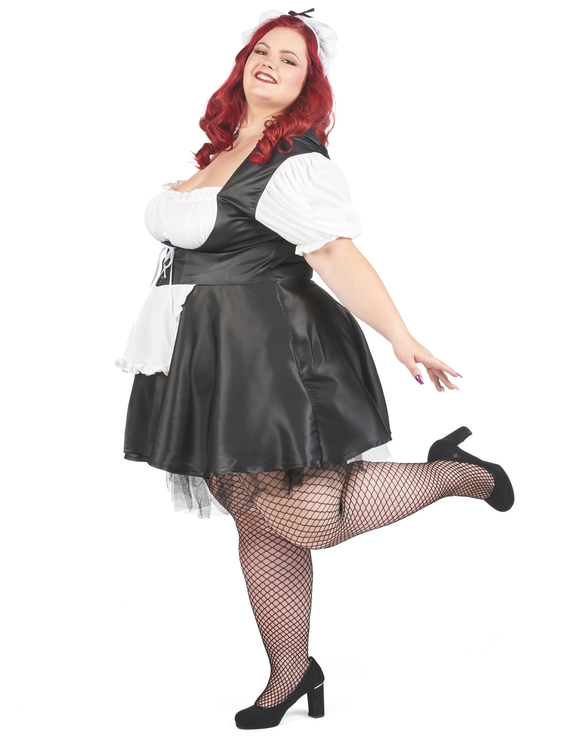 Ovaj veliki kostim veličine soubreta namijenjen je ženama. Sastoji se od haljine, pregače, pettika i trake za glavu. Haljina kostima je crne boje u cjelini, praćena kratkim i bijelim rukavima. Središnje vezanje je također bijele boje. Kućica će dovršiti haljinu, ukrašenu bijelom pregačom. Traka za glavu u bijeloj boji usavršit će cjelinu svojom malom čipkom. Dovršite sluškinju za karneval ili svoju seksi večer!