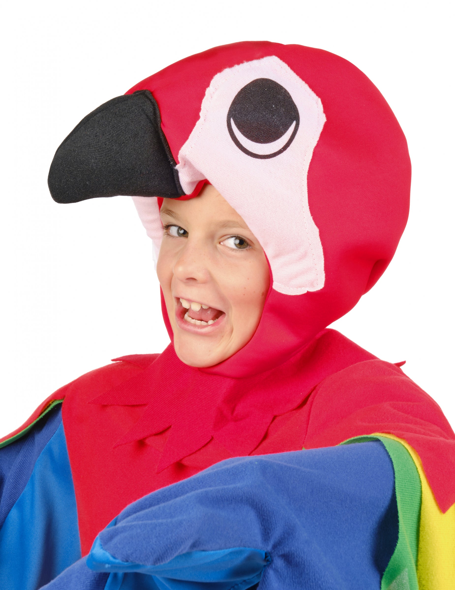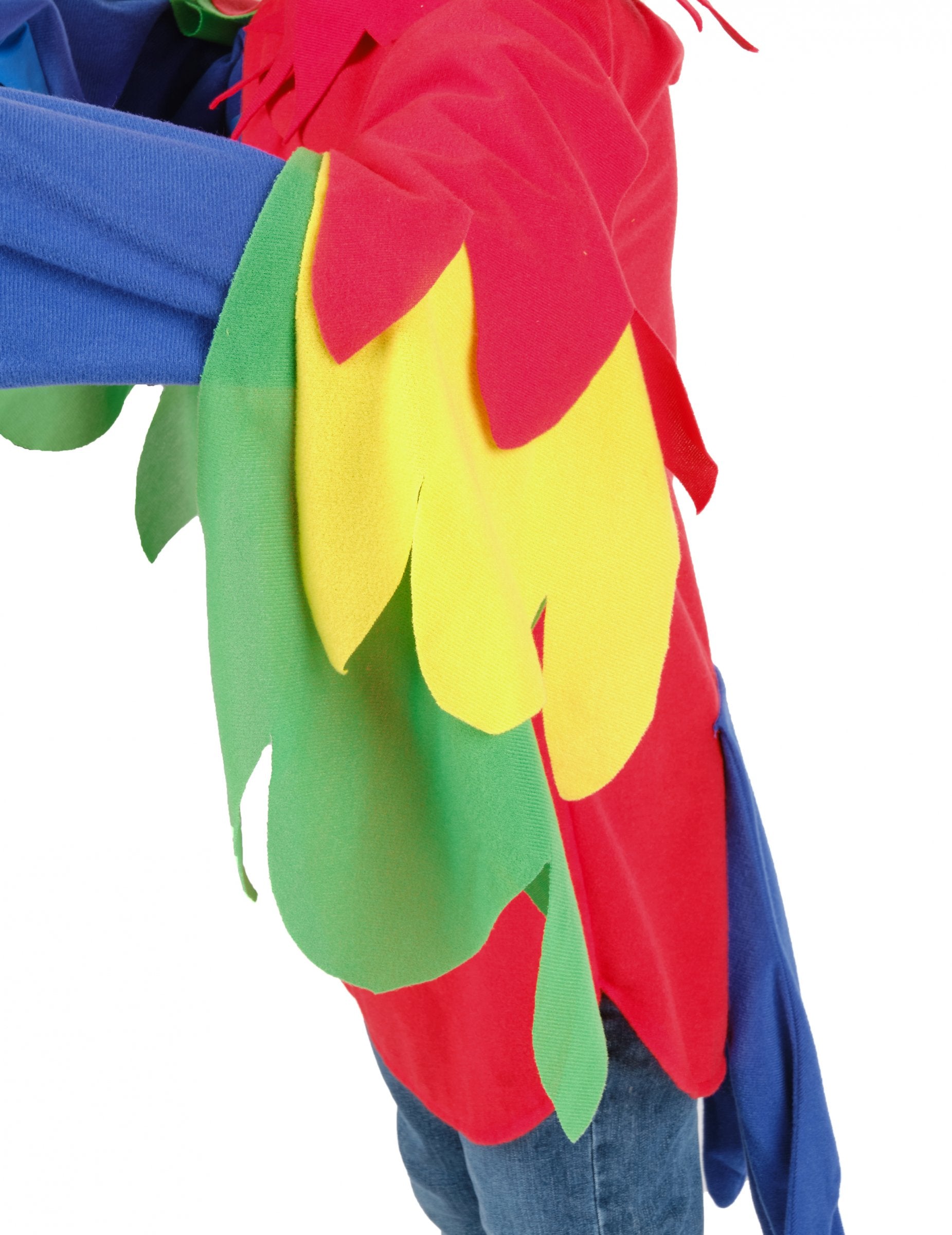 Prerušena prerušavanja ove dječje djece uključuje jaknu, kapuljaču i par podbola. Jakna kombiniranog stila je crvena, bijela, plava, zelena i žuta, baš kao i boje pravog papiga. Posebnost ovog kostima je imati velike pernate rukave zbog kojih će vaše dijete vjerovati da može pobijediti krila i ukrasti! Na to se dodaje plavi rep smješten straga. Ovaj će vrh lako staviti na vrh i zatvoriti se pomoću ogrebotine koja se nalazi na stražnjem dijelu prerušavanja. Doći će kapuljača i staviti na nju. Ima oblik glave vrlo dobro -izrađenog papiga, ukrašenih velikim očima, velikim kljunom i središnjim otvorom na razini usta, kako bi se pravilno vidjela tijekom prerušenog dana. Napokon, naći ćete par prenapučenih, tvoreći crne noge papiga. Ovaj prerušavanje papiga bit će savršen povodom karnevala ili za rođendan na temu životinja!