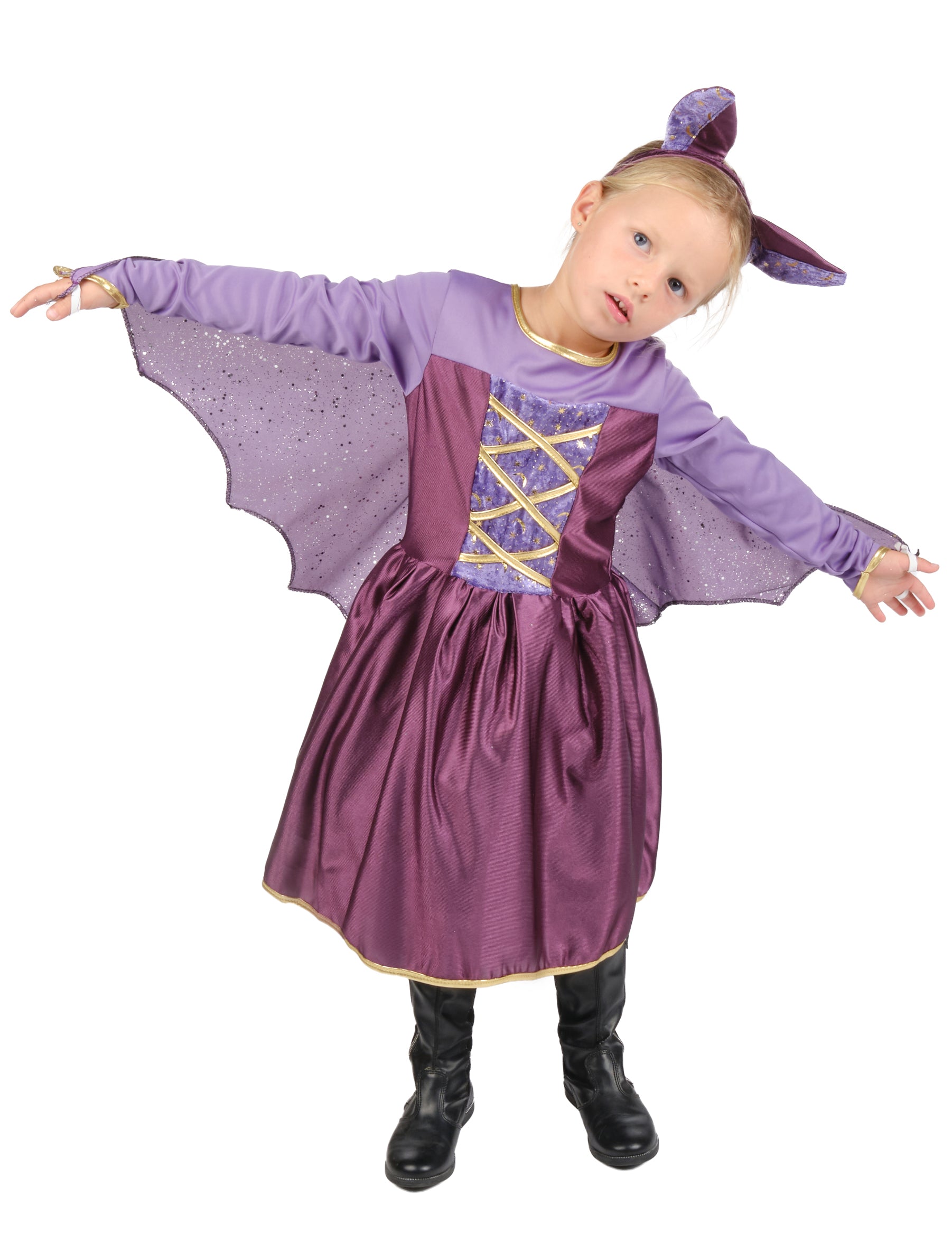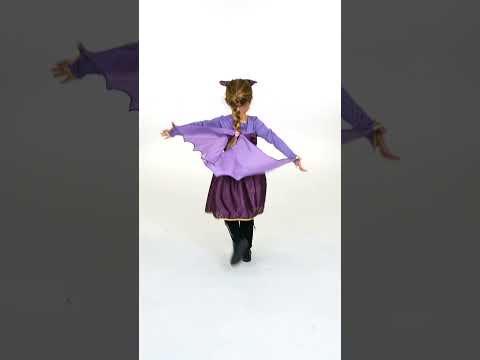 Ovaj kostim ljubičastog šišmiša za djevojčice sadrži rajf, haljinu s krilima i pojas.
