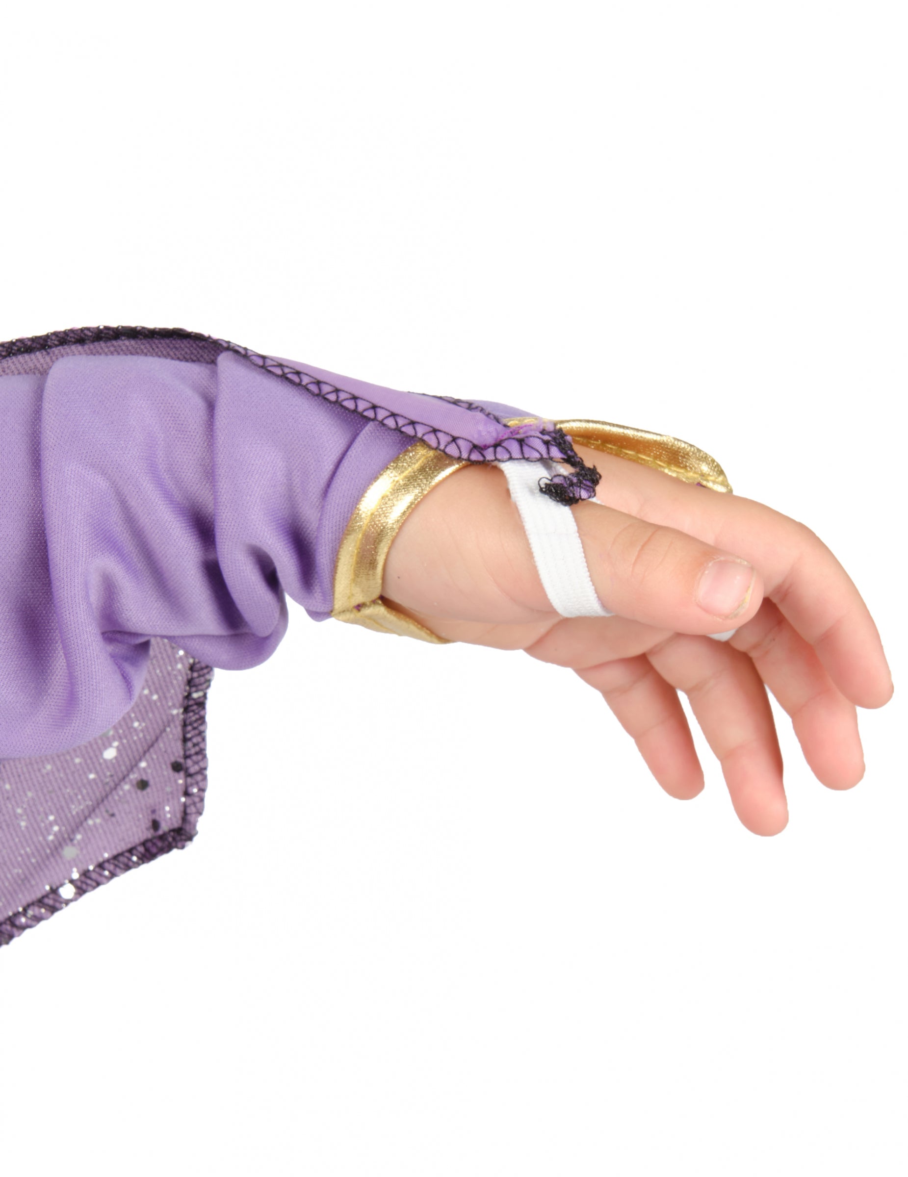 Ljubičasta haljina dugih rukava ima ljubičasta krila s šljokicama. Rukavi su svijetloljubičasti, dok je ostatak haljine tamnoljubičast. Gornji dio haljine je ljubičast s pozlaćenim mjesečevima i zvijezdama, a preko njega je zlatna vezica. Rubovi haljine su zlatni.