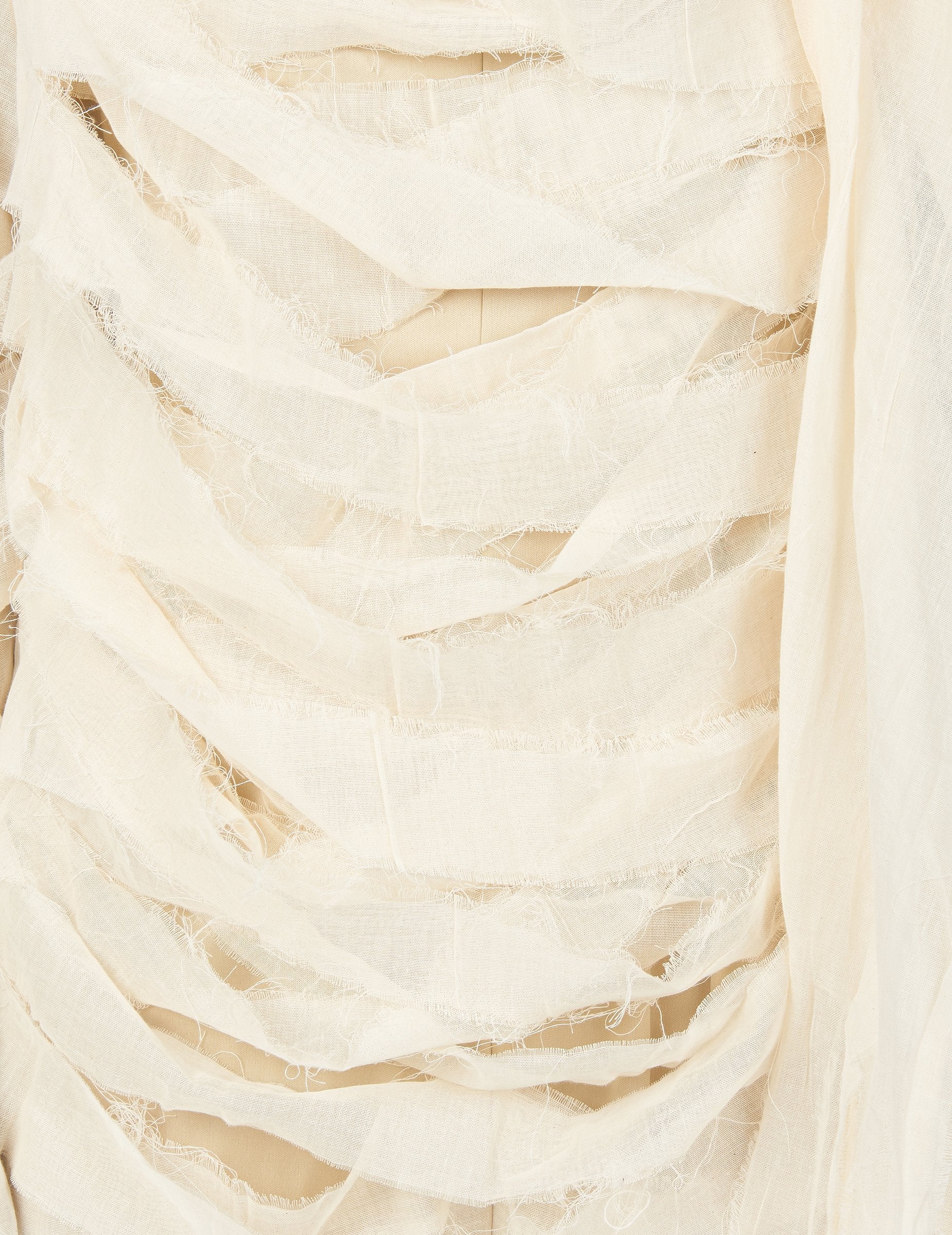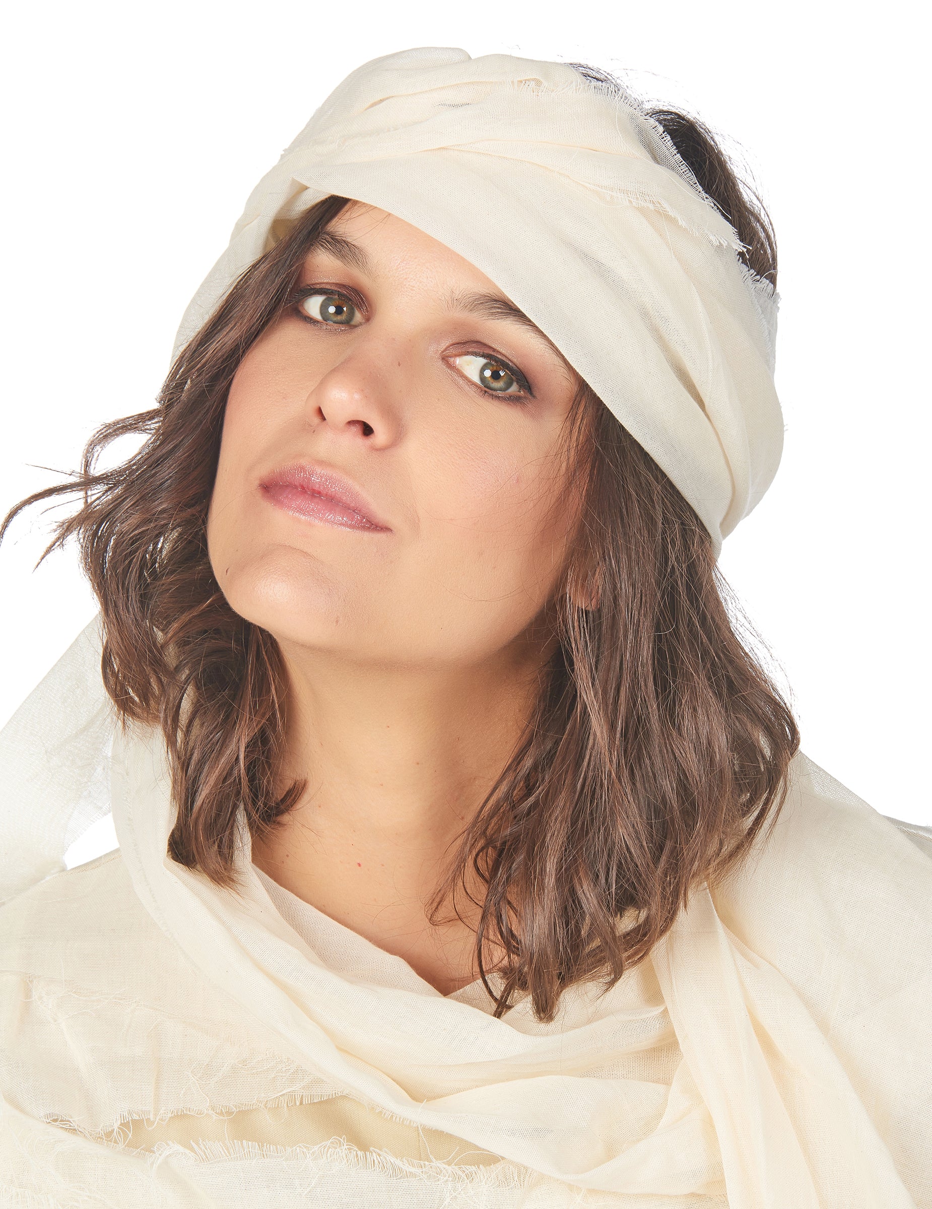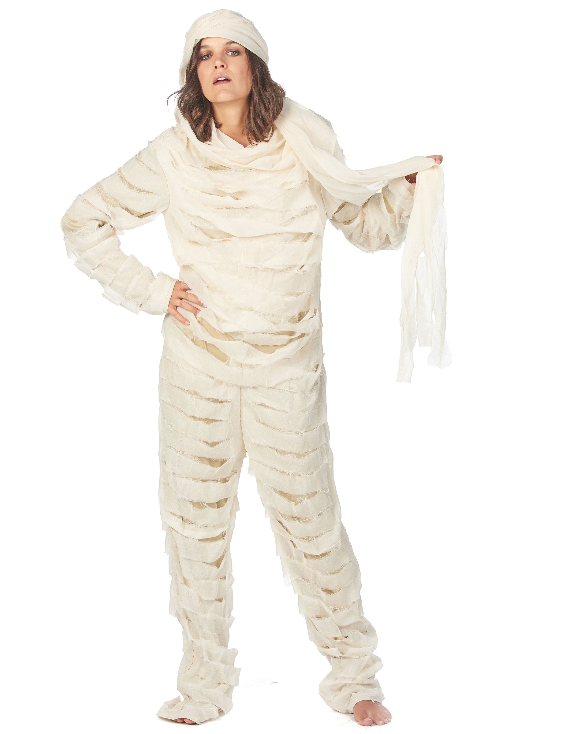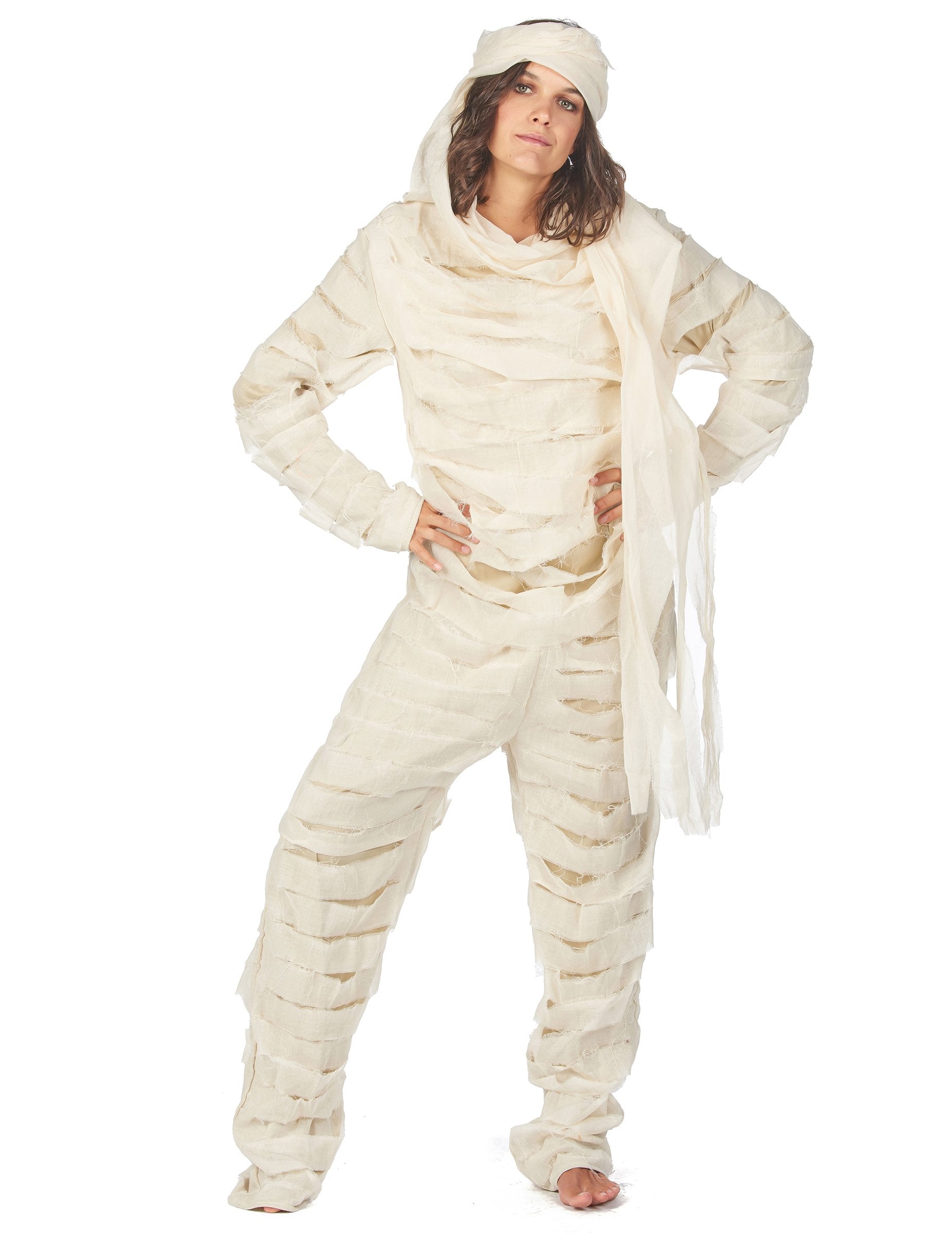 Ovaj kostim bijele mumije je za odrasle. U kompletu dolaze kombinezon i traka za glavu. Kombinezon ima duge rukave i bež je boje. Cijelom dužinom je izrezan za efekt poderanosti. Traka se stavlja oko glave i iste je boje kao i kombinezon.