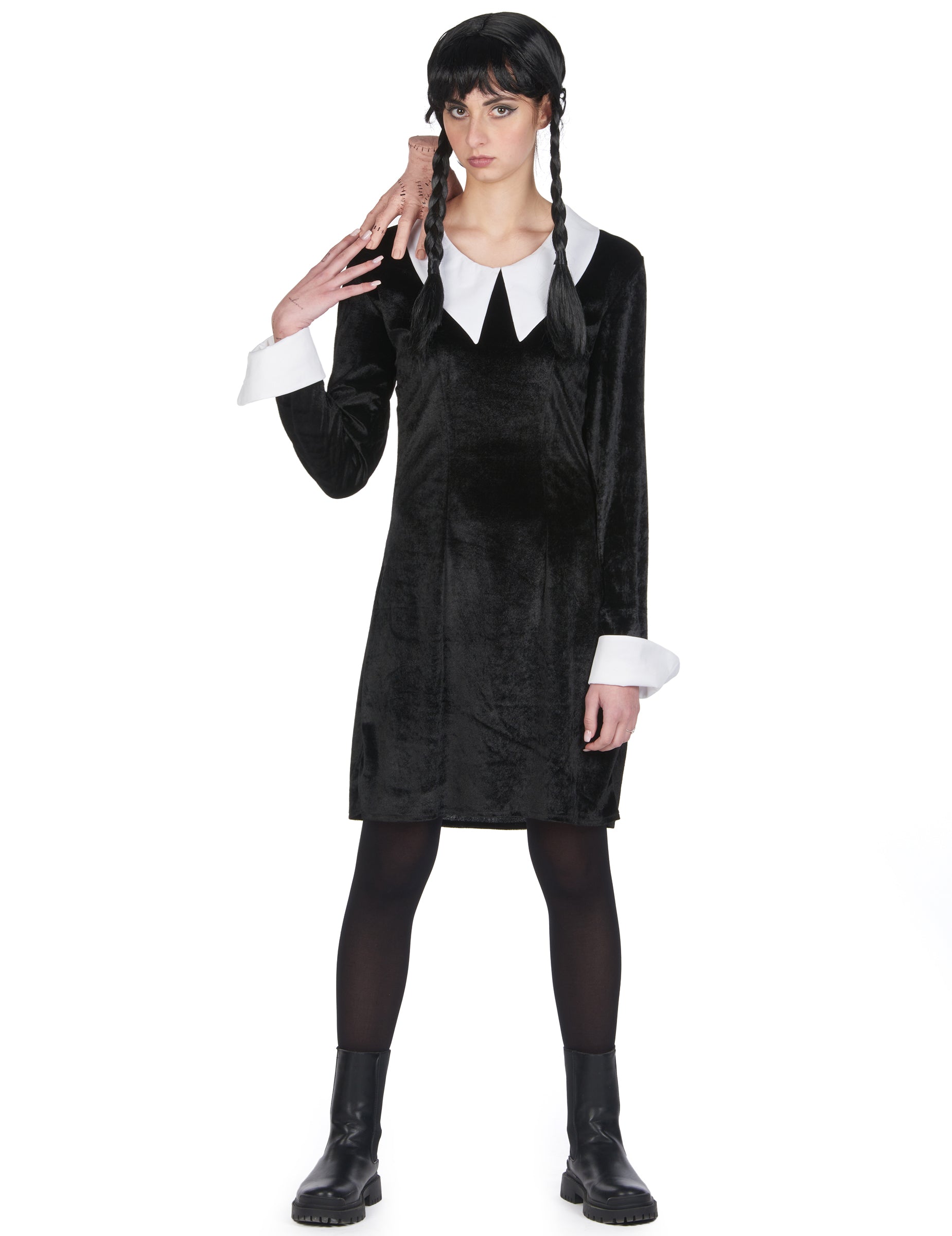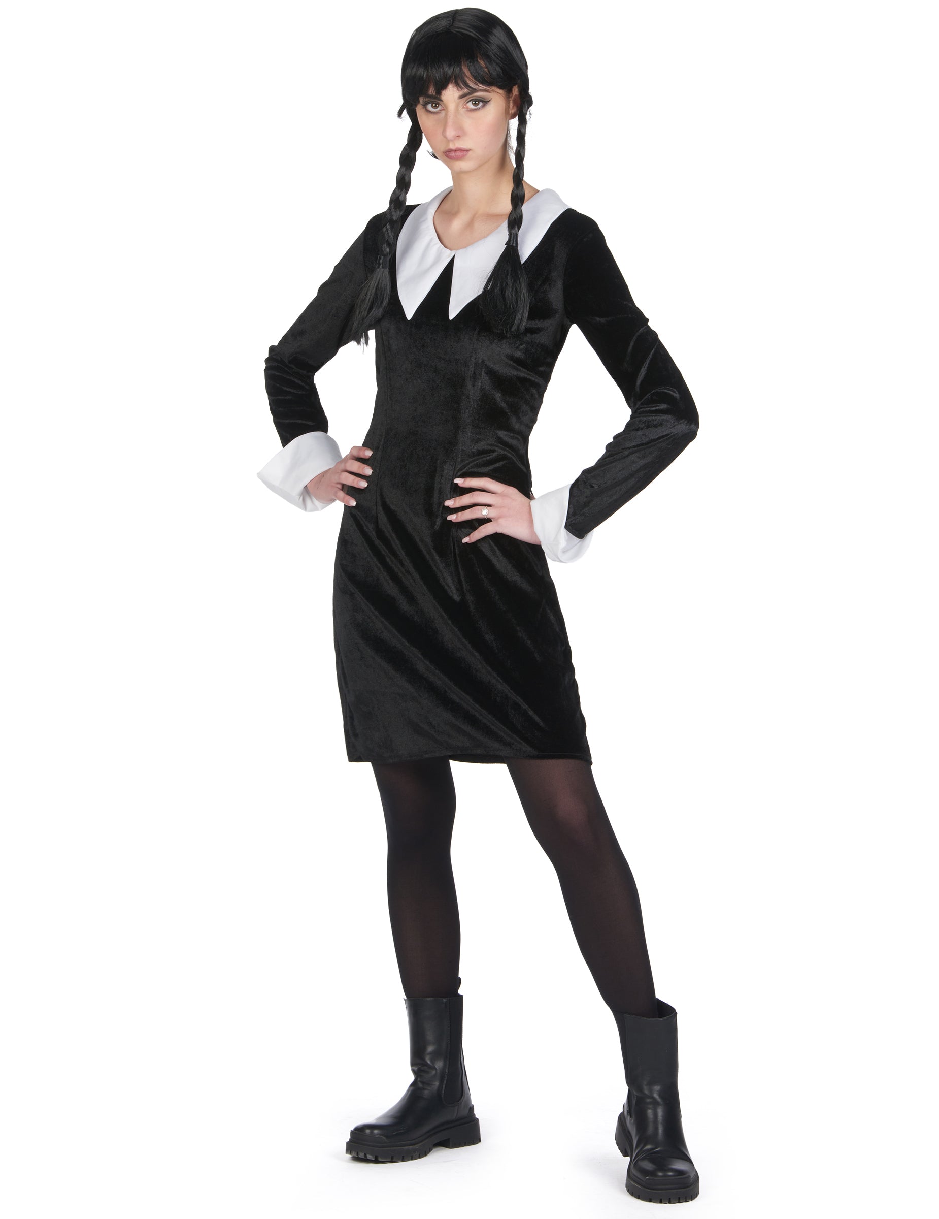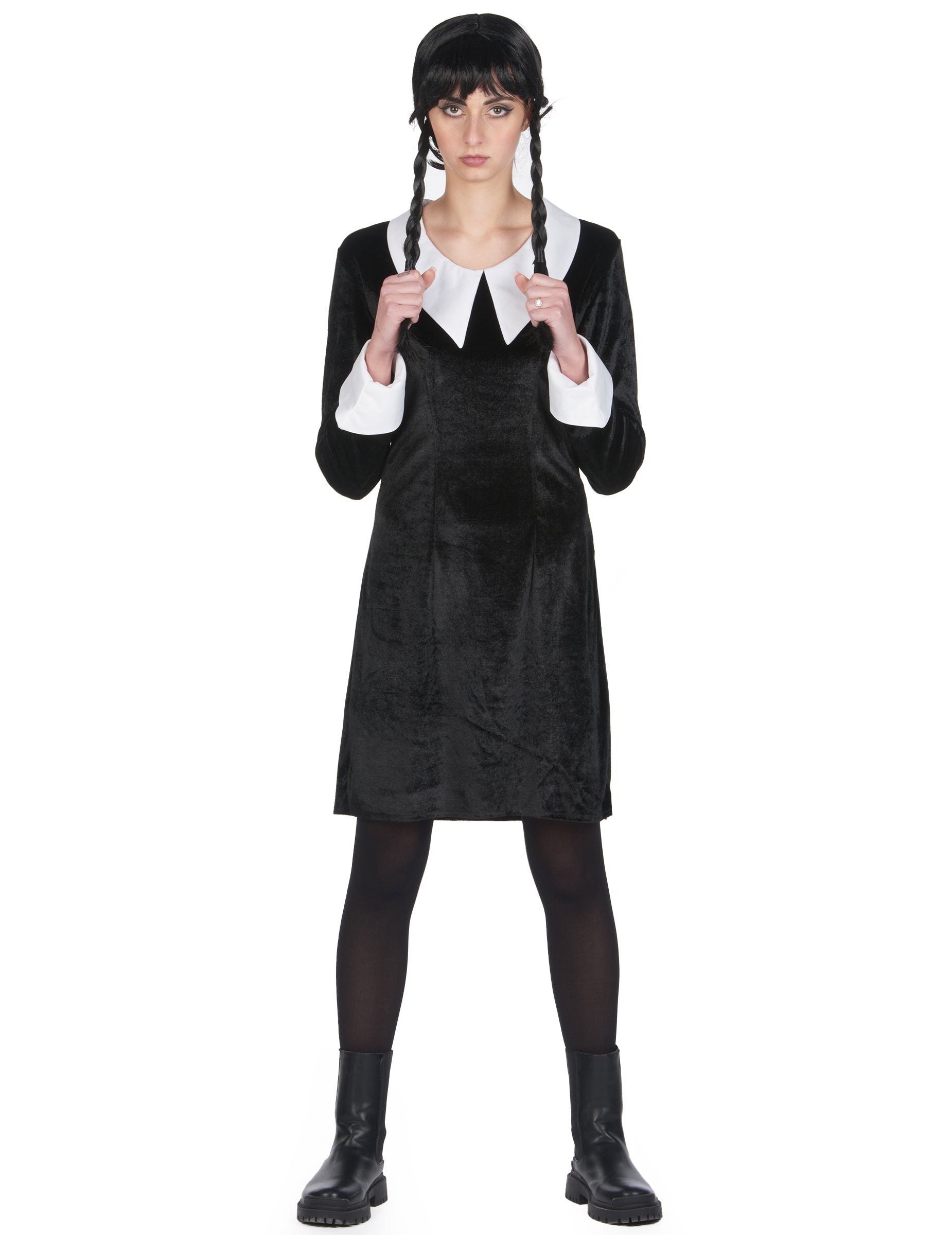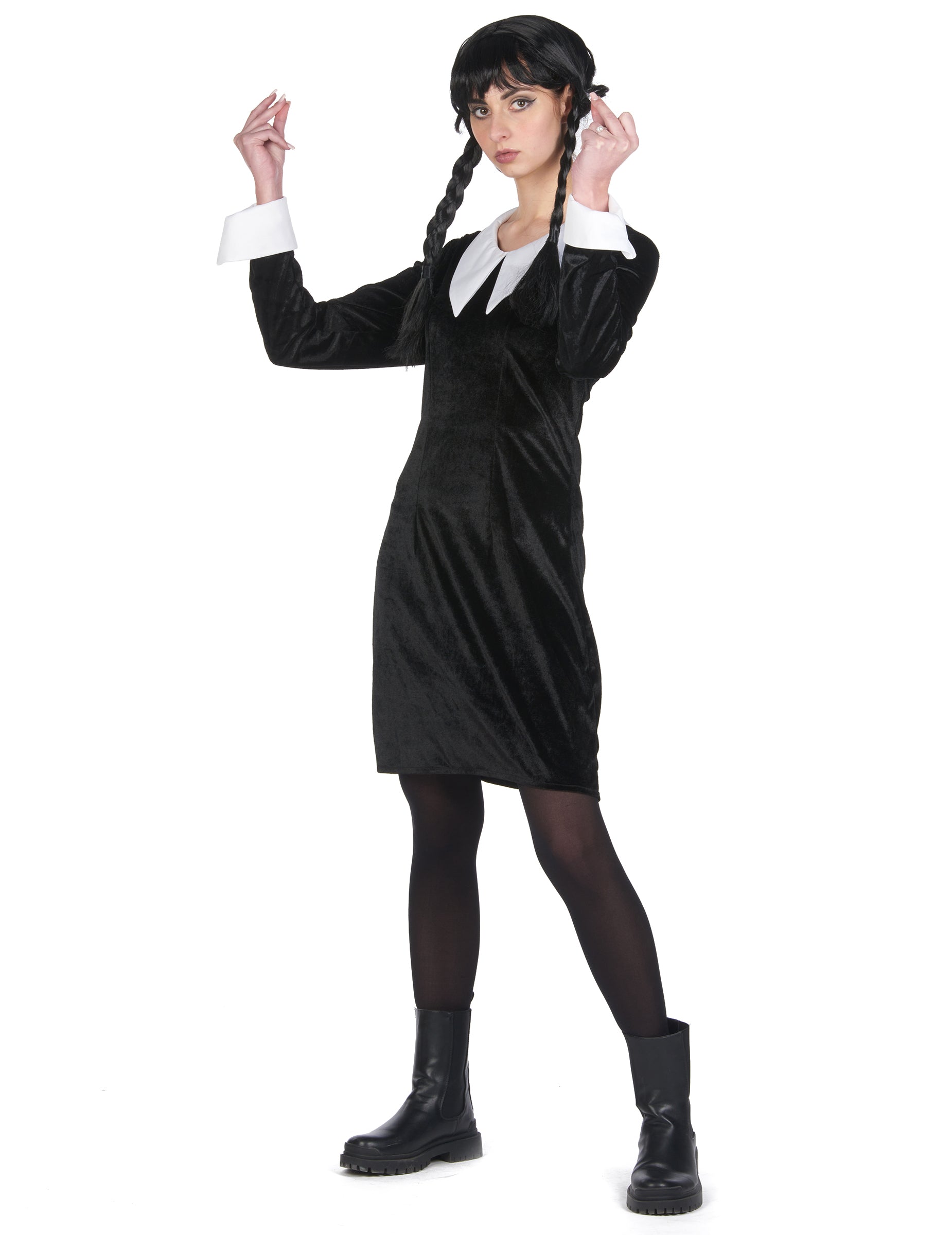 Ovaj kostim gotičkih učenika namijenjen je ženama. To je haljina srednje duge s bijelim ovratnikom. Haljina je crna i izrađena je u baršunastom efektnoj tkanini. To prerušavanje možete uljepšati s crnom pletenom perikom i čizmama za 100% gotički stil. Odlučite se za ovaj savršeni kostim gotičkih školskih ljudi za večer s prijateljima tijekom Noći vještica!