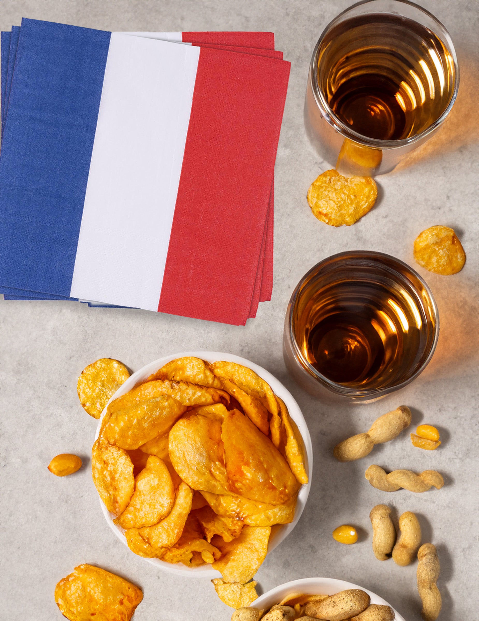 Ovo se lot sastoji od 20 papirnatih ručnika. Oni mjere otprilike 33 x33 cm jednom se odvijaju. Prugasti su plavom, bijelom i crvenom. Ovi ručnici bit će savršeni za sportski događaj i za podršku Francuskoj!