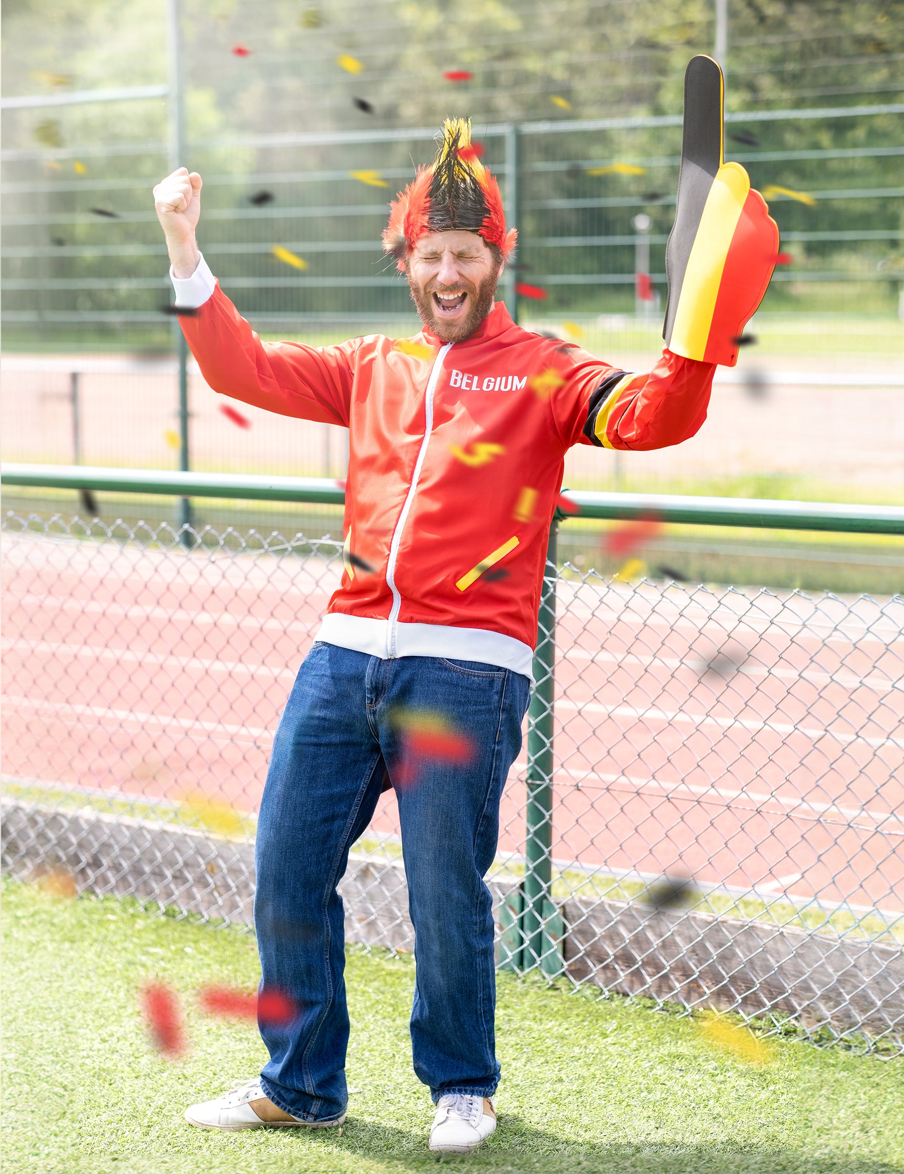 Ova ruka koja podržava Belgiju je u mišu i za odrasle. Podignuta je indeks kako bi podržala vaš omiljeni tim. To je u bojama belgijske zastave: crna, žuta i crvena. Podržite belgijsku momčad tijekom sportskih događaja s ovom mahovinom rukom s slicom Belgije!