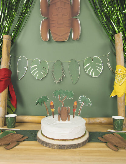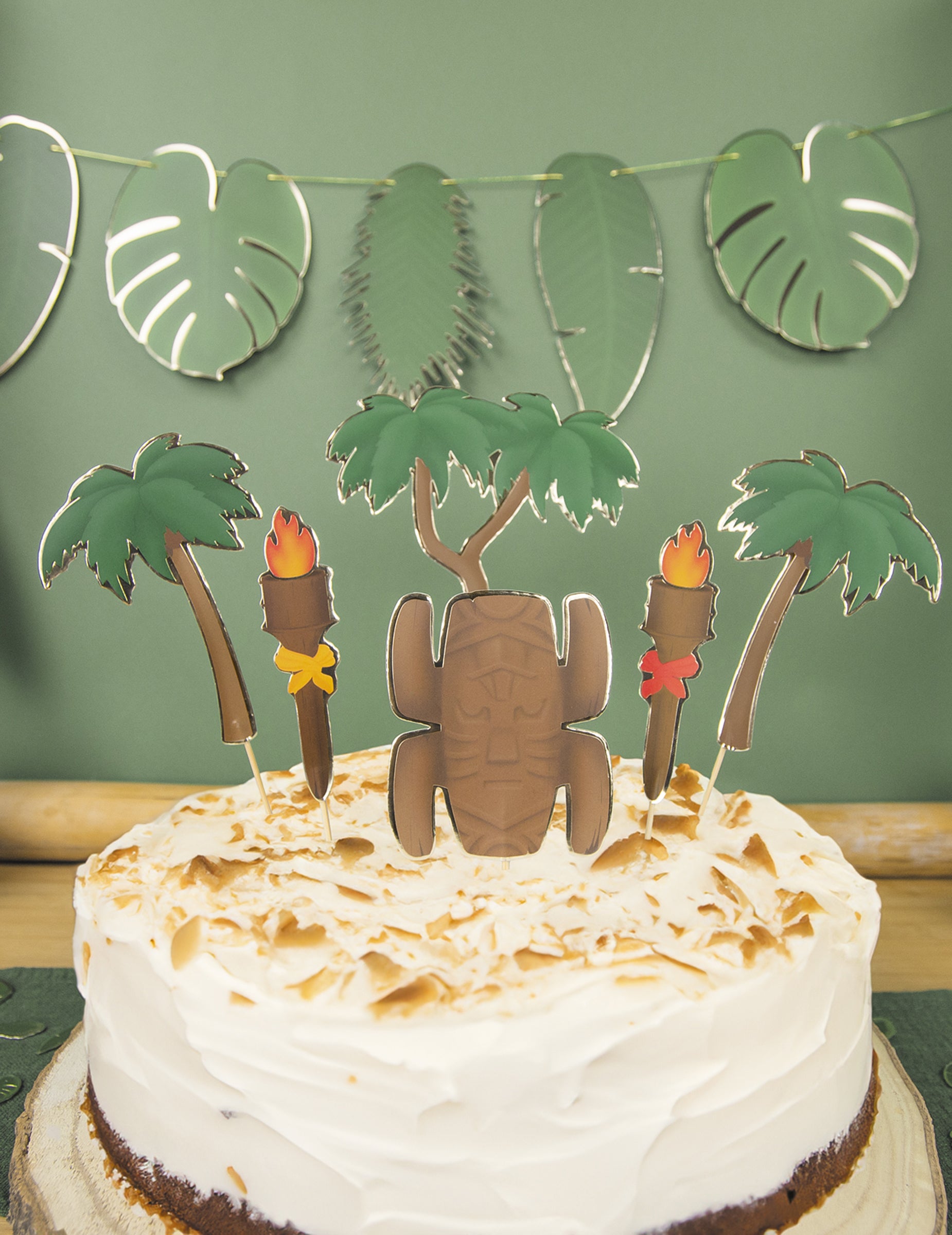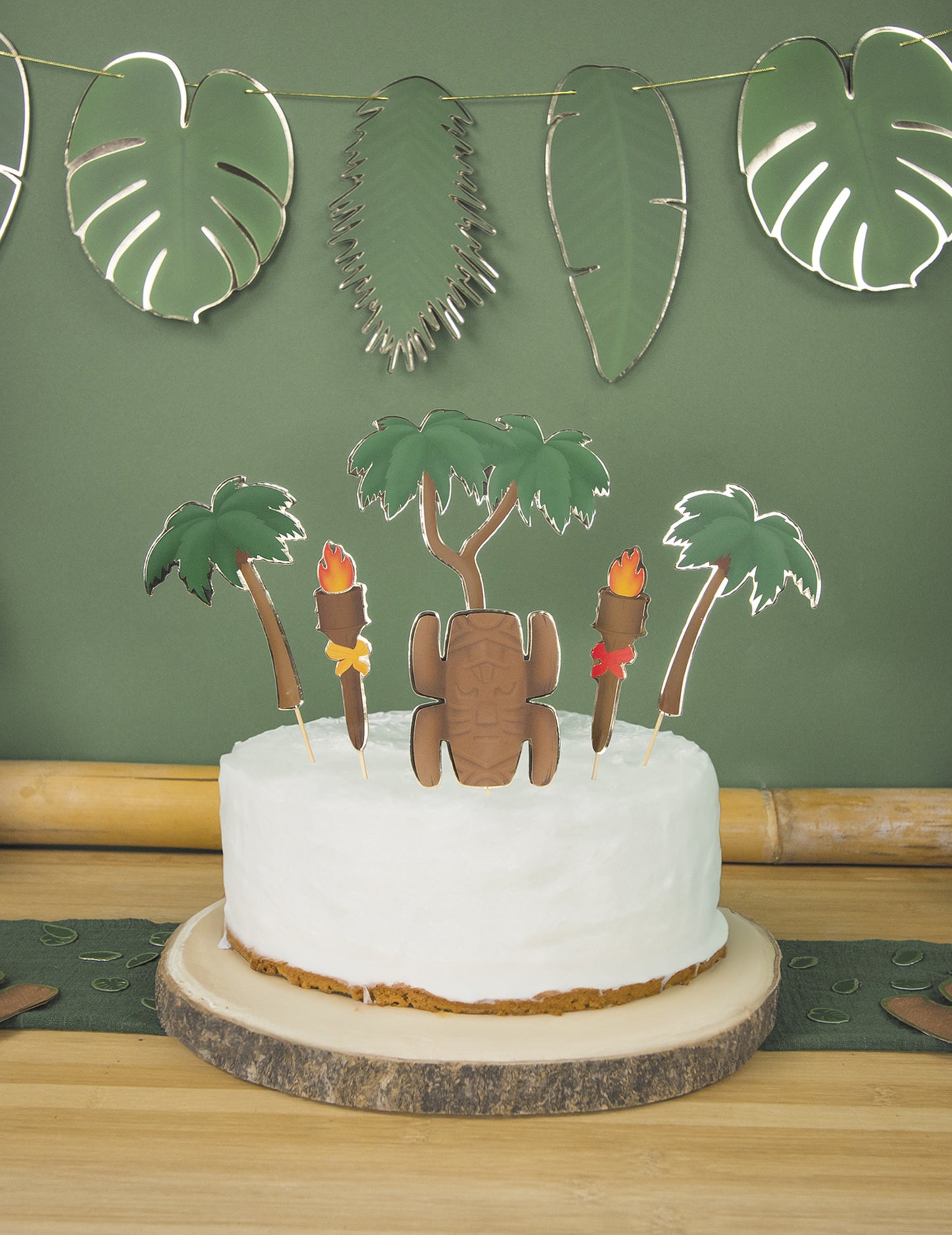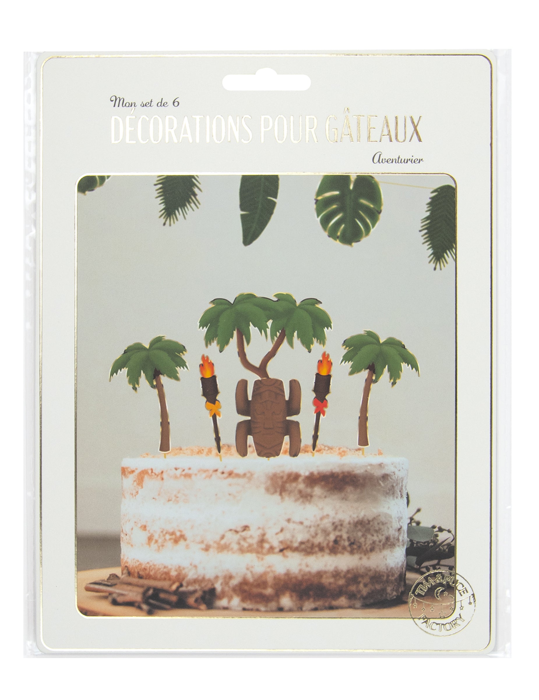 Ova partija uključuje 6 ukrasa za tortu: - 1 koji predstavlja totem - 2 koji predstavljaju baklje - 3 palmi. Ove ukrase su u kartonu, a vrhovi su izrađeni od drva. Ovaj će set biti savršen za ukrašavanje vaše torte povodom vašeg rođendana!