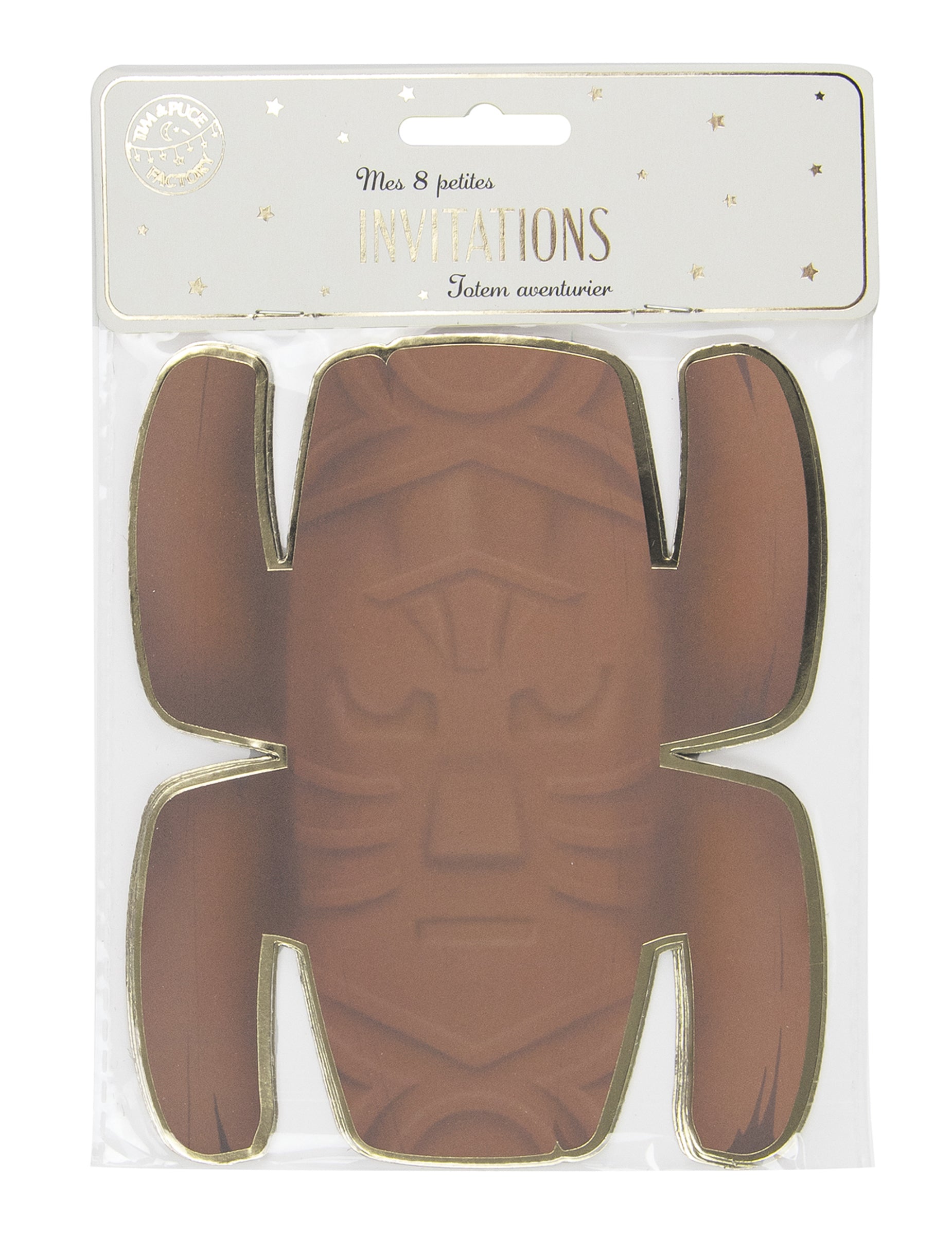 Te se pozivnice prodaju u seriji od 8 i mjere otprilike 12 cm x 16 cm. Napravljeni su od kartona i zastupaju na jednom licu totem, dok drugi ima umetnik za pisanje vašeg teksta. Pozovite svoje prijatelje da se pridruže avanturi s ovim totemskim pozivnicama povodom vašeg rođendana!