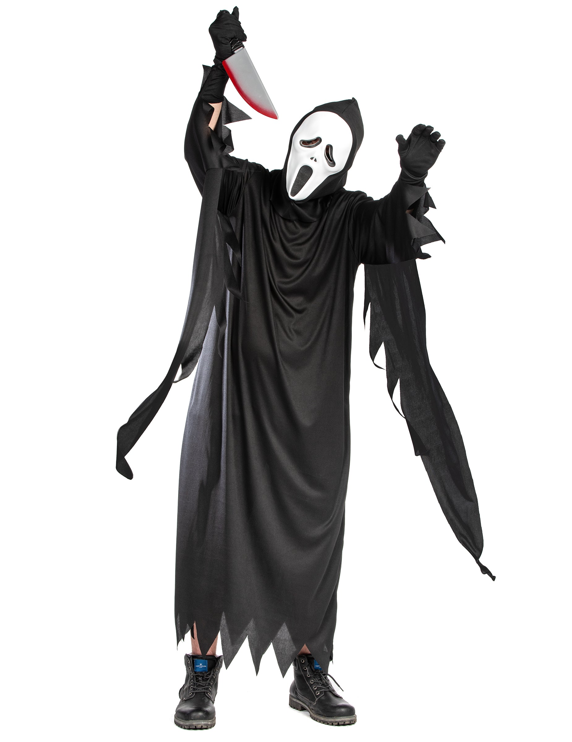 Ovaj prikriveni kostim za ubojicu odraslih sastoji se od crne kombinacije i zastrašujuće maske, savršene za uvlačenje straha tijekom Noći vještica ili bilo koje prikrivene večeri. Kombinacija crne, tekućine i svjetla spušta se do gležnjeva kako bi vas omotala u tajanstveni izgled. Njegovi dugi rukavi i labava tkanina ne samo daju optimalnu udobnost, već dodaju i dramatičan dodir svakom od vaših pokreta, jačajući izgled macabre. Najviša točka ove prerušavanje je, naravno, zastrašujuća maska. Svojim izrazom smrznutom u krik užasa, on vam potpuno skriva lice, pretvarajući vas u nemilosrdnog ubojice i bez identiteta. Ova maska potpuno pokriva lice, ostavljajući samo vaše vidljive oči za još hladniji dodir. Lako se obući i nositi, ovaj je kostim savršen izbor za sve koji se žele uklopiti u svijet amblematičnih ubojica terorističkih filmova. Bez obzira na to je li progoniti ulice tijekom Noći vještica ili uplašiti svoje prijatelje tijekom tematske večeri, ovaj maskirani ubojica jamči upečatljiv učinak.