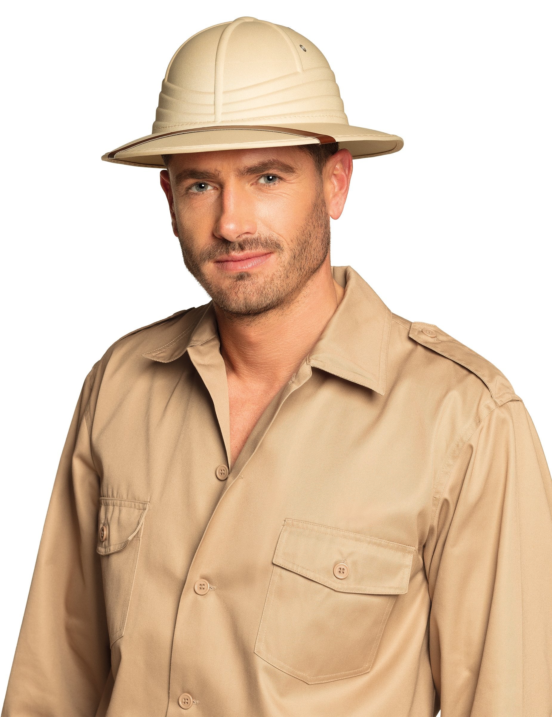 Ovaj šešir za istraživanje džungle namijenjen je odraslima. Bež je boje s smeđom pločom. Predstavlja šešir savršenog istraživača. Idite na avanturu s ovim šeširom za istraživanje džungle povodom vašeg sljedećeg karnevala ili tijekom sljedeće prerušene večeri!