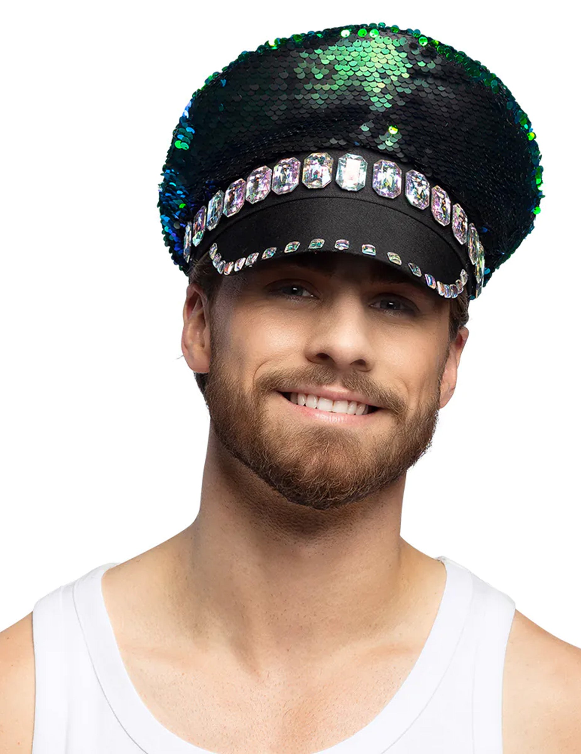Ova plava i plava reverzibilna kapa za šljokice namijenjena je odraslima. Ima reverzibilne šljokice koje mijenjaju crnu boju pjenušavom plavkastom zelenom bojom, privlačeći tako pažnju svih oko vas! Nećete proći nezapaženo s ovom kapom trenda, idealno za disko večer ili za vaš sljedeći festival!