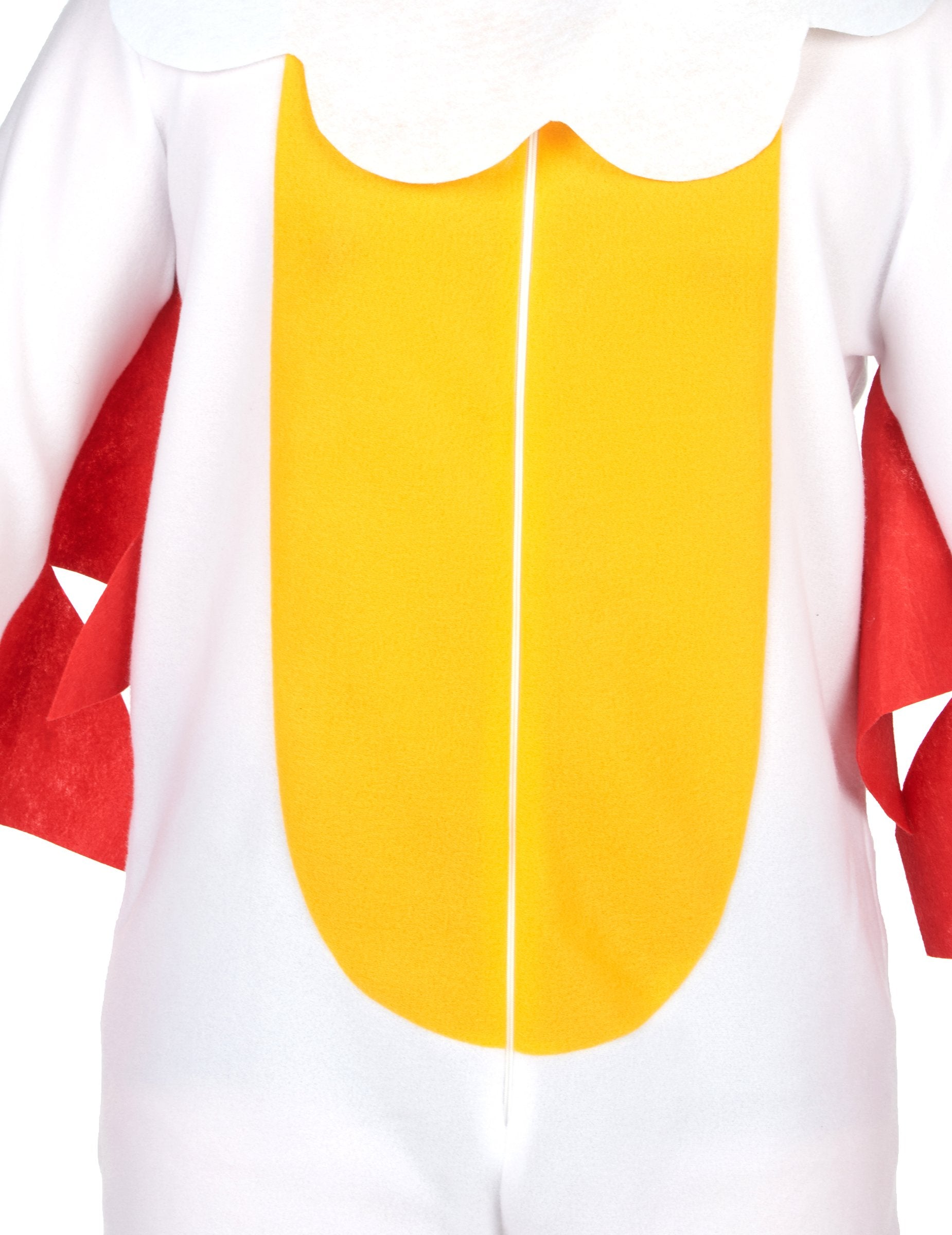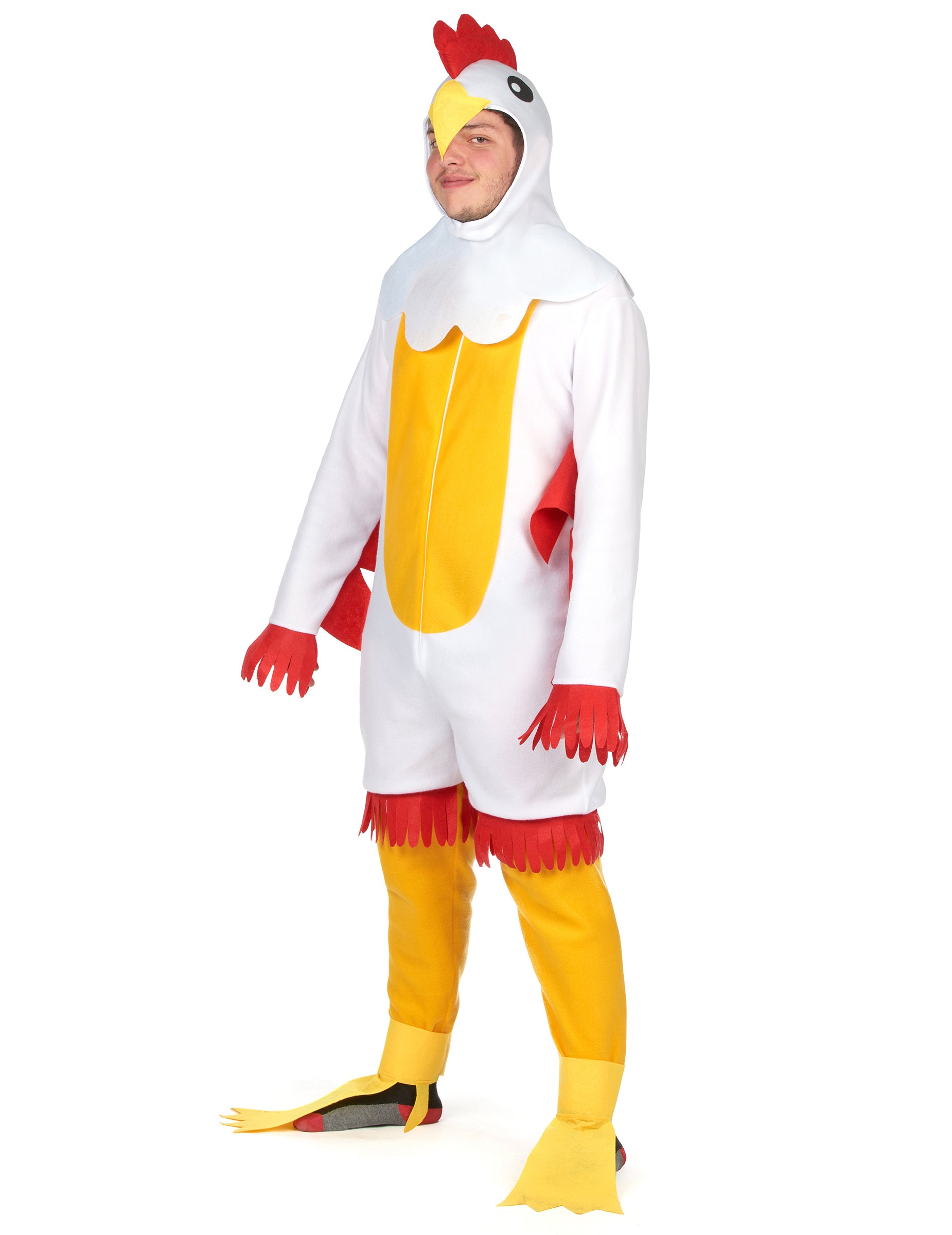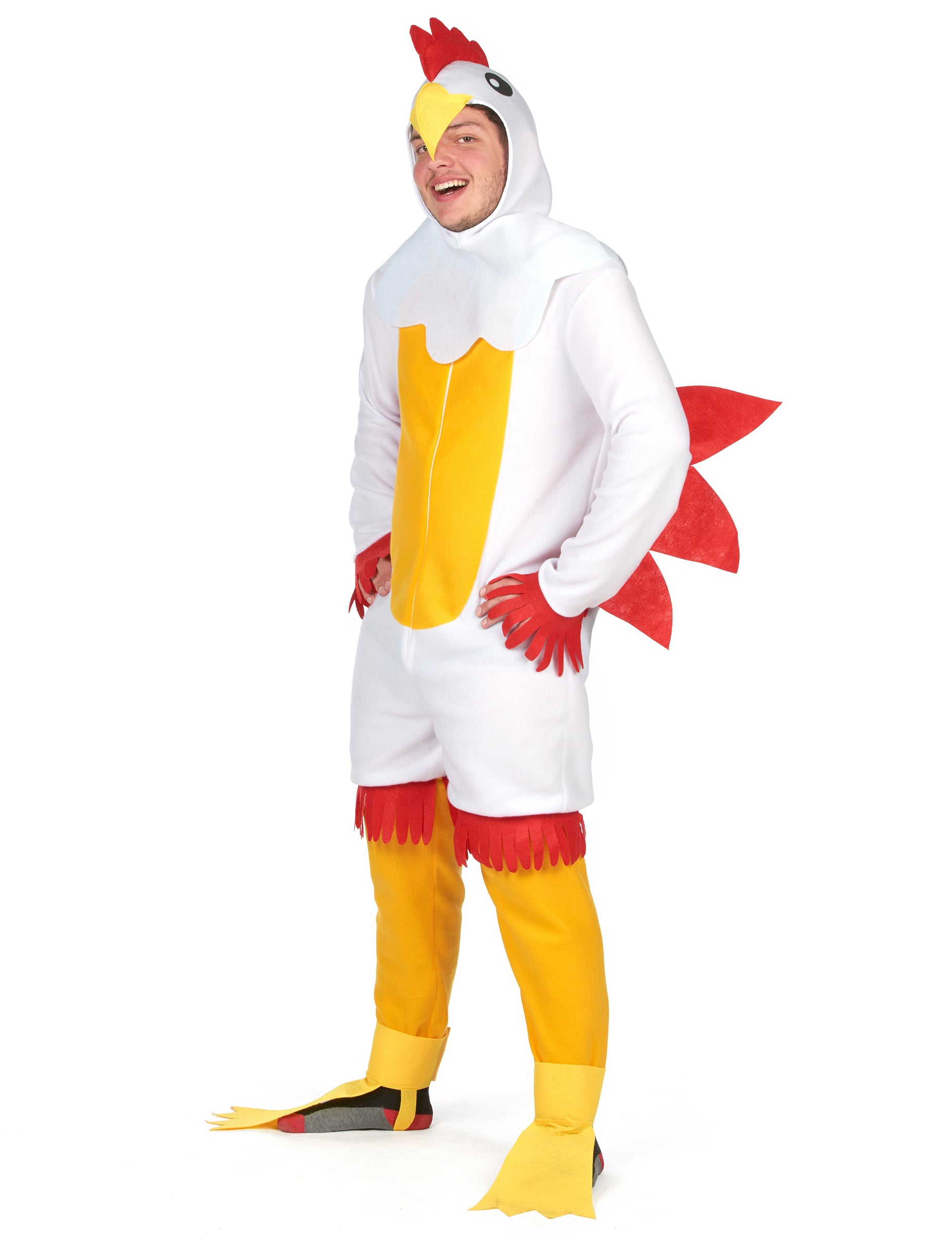 Ovaj kostim piletine za odrasle savršen je za unošenje humora na vaše maskirane zabave! Sadrži mekani bijeli kombinezon s crvenim krilima ušivenim u struku, pružajući autentičan i zabavan izgled. Praktični patentni zatvarač sprijeda olakšava obuvanje. Žute galoše dodaju završni dodir kokošjim nogama, dok pokrivalo za glavu upotpunjuje izgled imitirajući pileću glavu, uključujući grb! Idealan za karneval, tematsku zabavu ili bilo koju prigodu u kojoj želite iznenaditi i nasmijati ljude, ovaj će vas kostim pretvoriti u nezaobilaznu zvijezdu večeri.