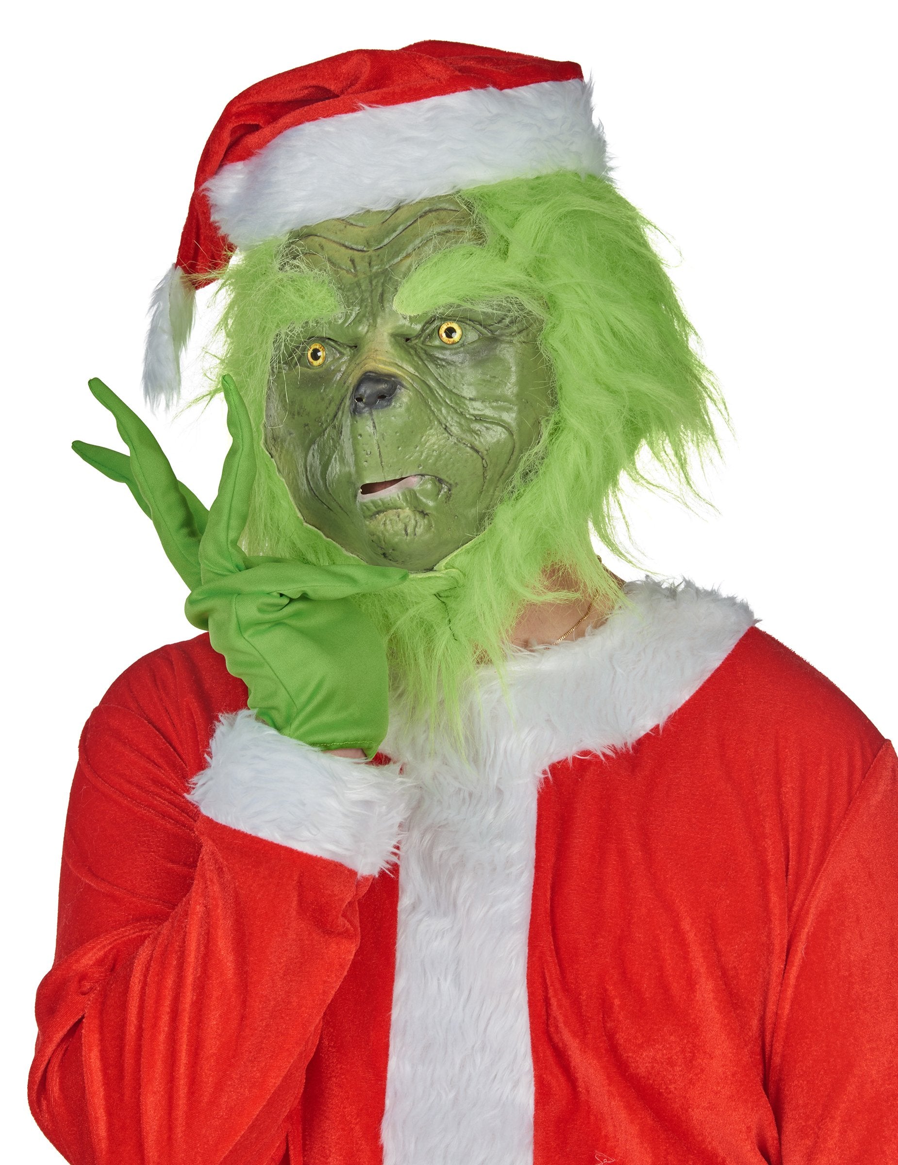 Maska je dizajnirana tako da vjerno prikazuje lice poznatog zelenog božićnog čudovišta, s dlakavom teksturom i realističnim izgledom.