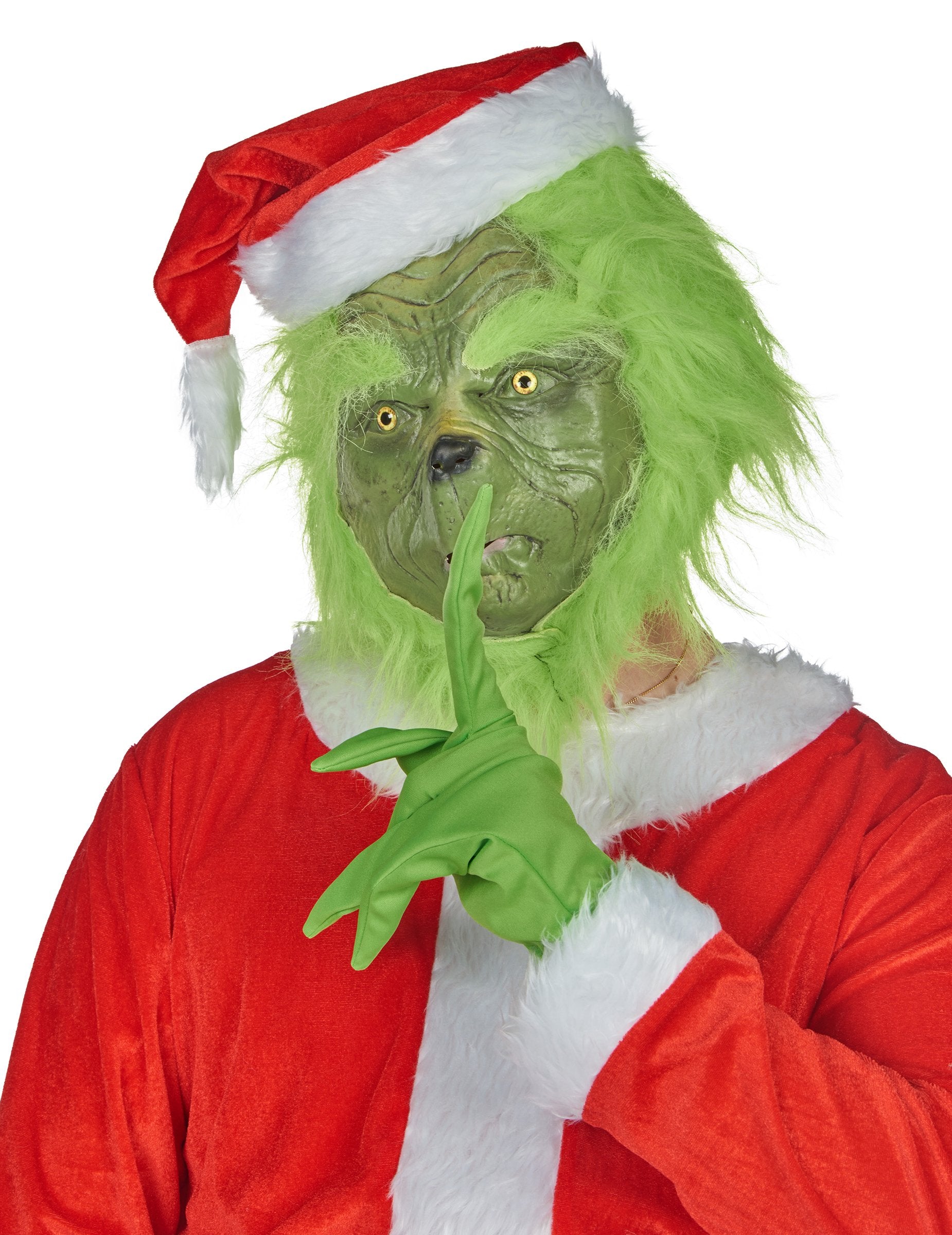 Izdužene zelene rukavice savršeno oponašaju tanke i zakrivljene prste lika, dok crveno-bijela božićna kapa daje završni dodir ovom nezaboravnom kostimu.