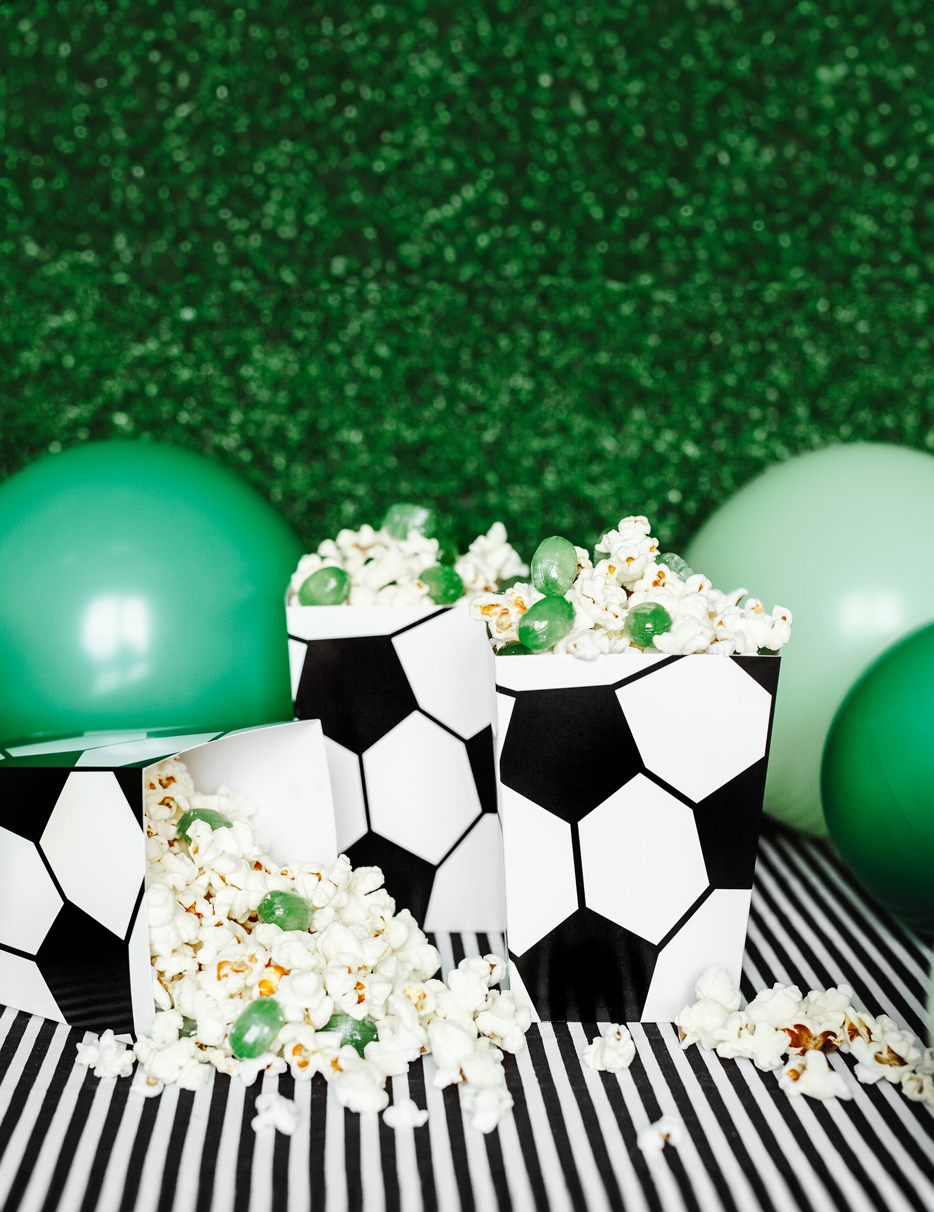 Ova serija sadrži 6 kutija s kokicama na temu nogometa. Svaka kutija mjeri otprilike 7 x 7 x 12,5 cm i ukrašen je crno -bijelim nogometnim uzorkom balona. Savršeni za podudarne večeri ili sportske tematske festivale, ove će kartonske kutije dodati zabavan i praktičan dodir vašim zalogajima. Ocijenite bodove s ovim originalnim i elegantnim kutijama kokica!