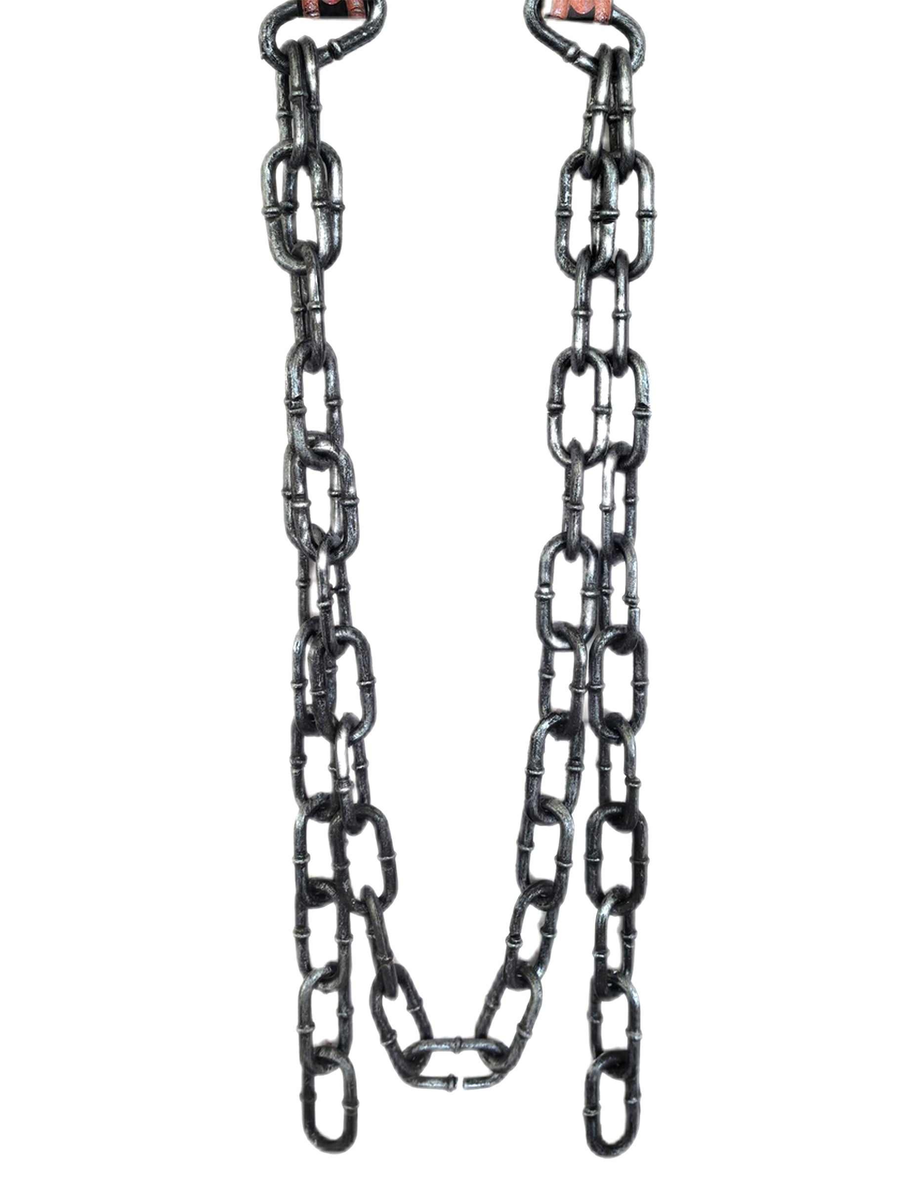 Cette fausse chaine en plastique mesure environ 180 cm de longueur. Elle peut être utilisée en décoration, pour créer un décor de prison abandonnée par exemple, ou en accessoire pour compléter votre déguisement de prisonnier zombie. Cette chaine sera un parfait complément à votre décoration ou votre costume le soir.