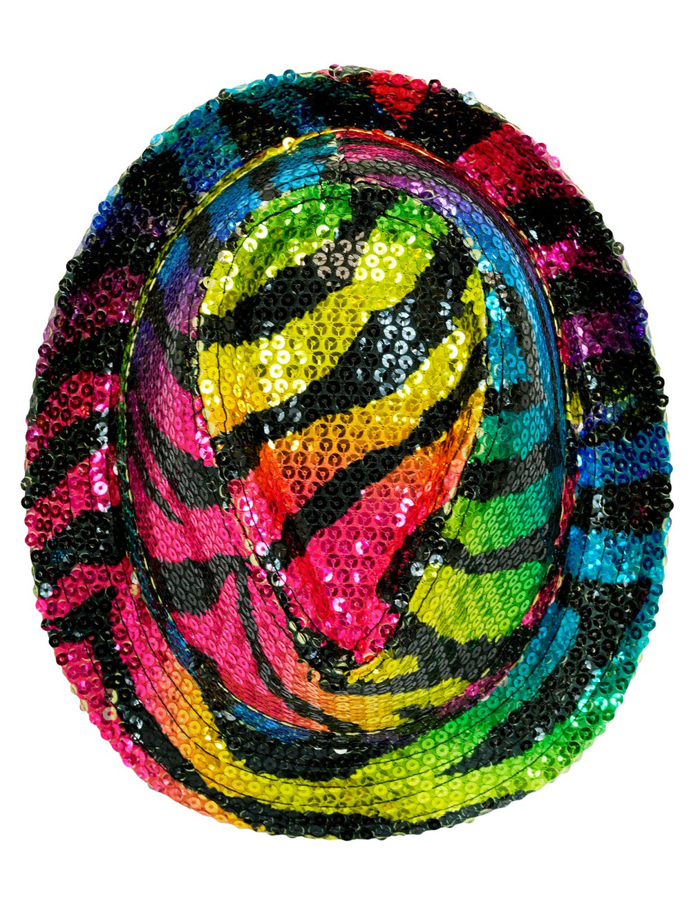 Dodajte svečani dodir svom izgledu s ovim šeširom od šljokica i tigra. Prekriven pjenušavim šljokicama, uhvati svjetlost i ističe svoj višebojni tigrasti print, miješajući nijanse poput crvene, žute, plave i zelene. Njegov elegantni oblik s podignutim rubovima dodaje originalnu i dinamičnu notu. Zahvaljujući svojoj standardnoj veličini, ugodno odgovara većini odraslih. Savršeno za maštovitu haljinu, festival, karneval ili kostim zabavu, ovaj šešir idealno dovršava odjeću svijetlim i šarenim dodirom.
