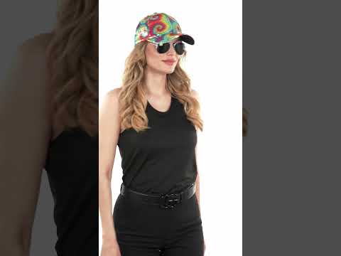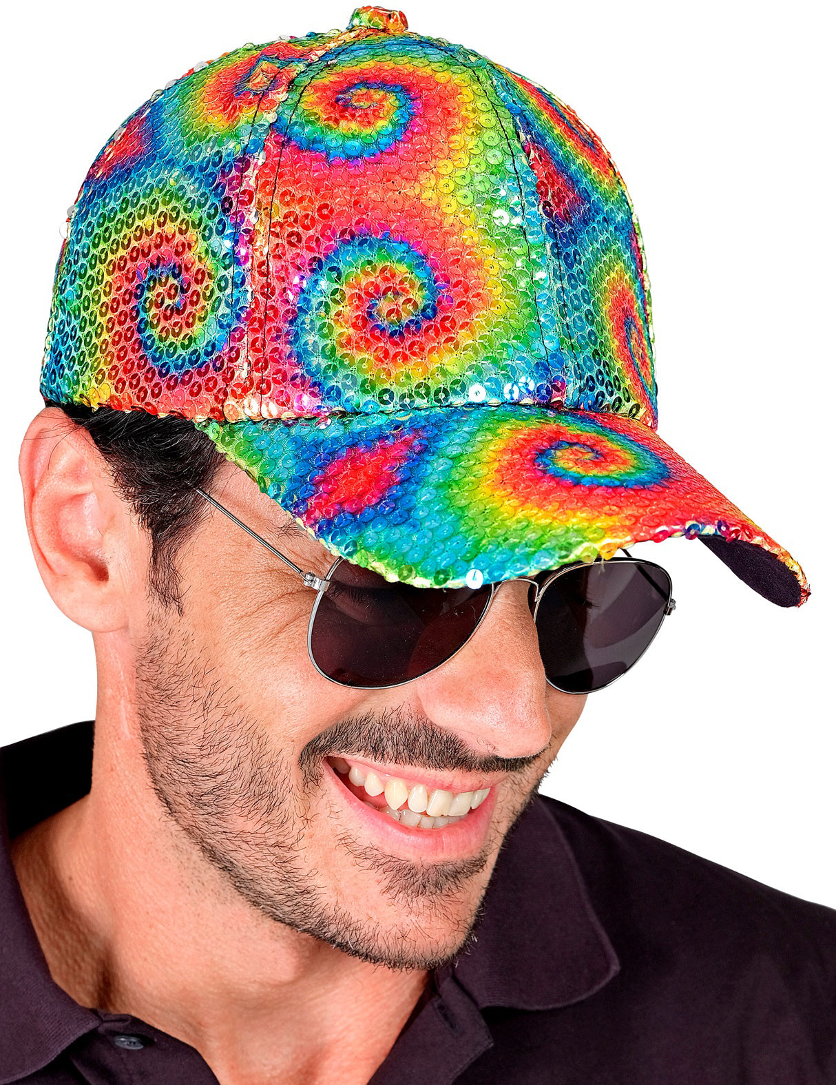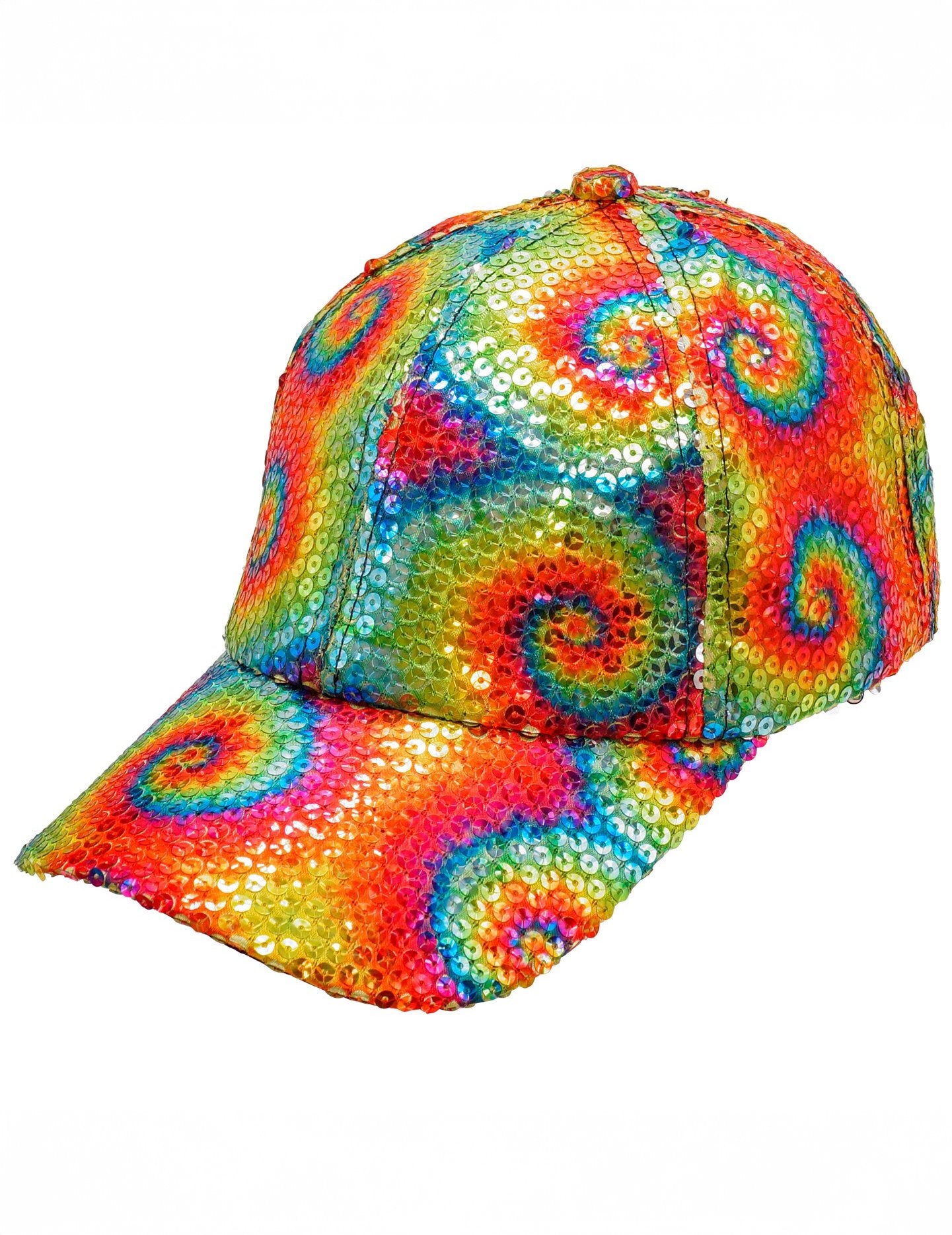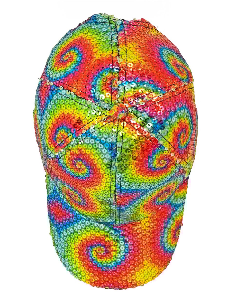 Pokažite svoj stil s ovim višebojna šljokičasta kapainspiriran spiralnim tie-dye uzorkom.
