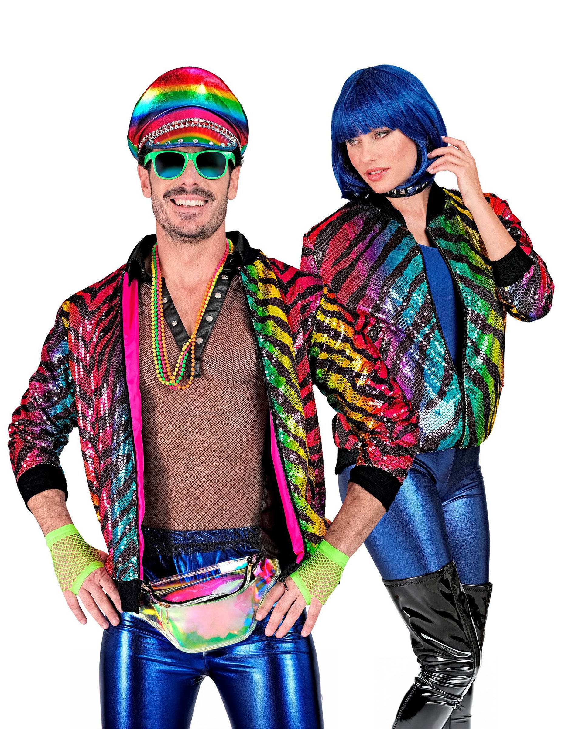 Potražite svoju osobnost ovom uniseks bombardijskom jaknom, dizajniranom u laganoj tkanini prekrivenom višebojnim šljokicama s dinamičnim uzorkom tigra. Savršen spoj urbanog stila i bujnosti, idealan za one koji se vole istaknuti. Njegov jedinstveni dizajn sjaji svojim šljokicama s duginim refleksijama, stvarajući upečatljiv vizualni efekt. Crni rebrasti rubovi na ovratniku, manžetovima i struku pružaju kontrastni dodir i savršeno uklapanje, dok njegov prednji zip dodaje praktičnu i modernu dimenziju. Idealno za karneval, disko večer, festival ili svečani događaj, ova jakna garantira blistavu i nezaboravnu prisutnost, spremnu za uhvatiti sve oči!
