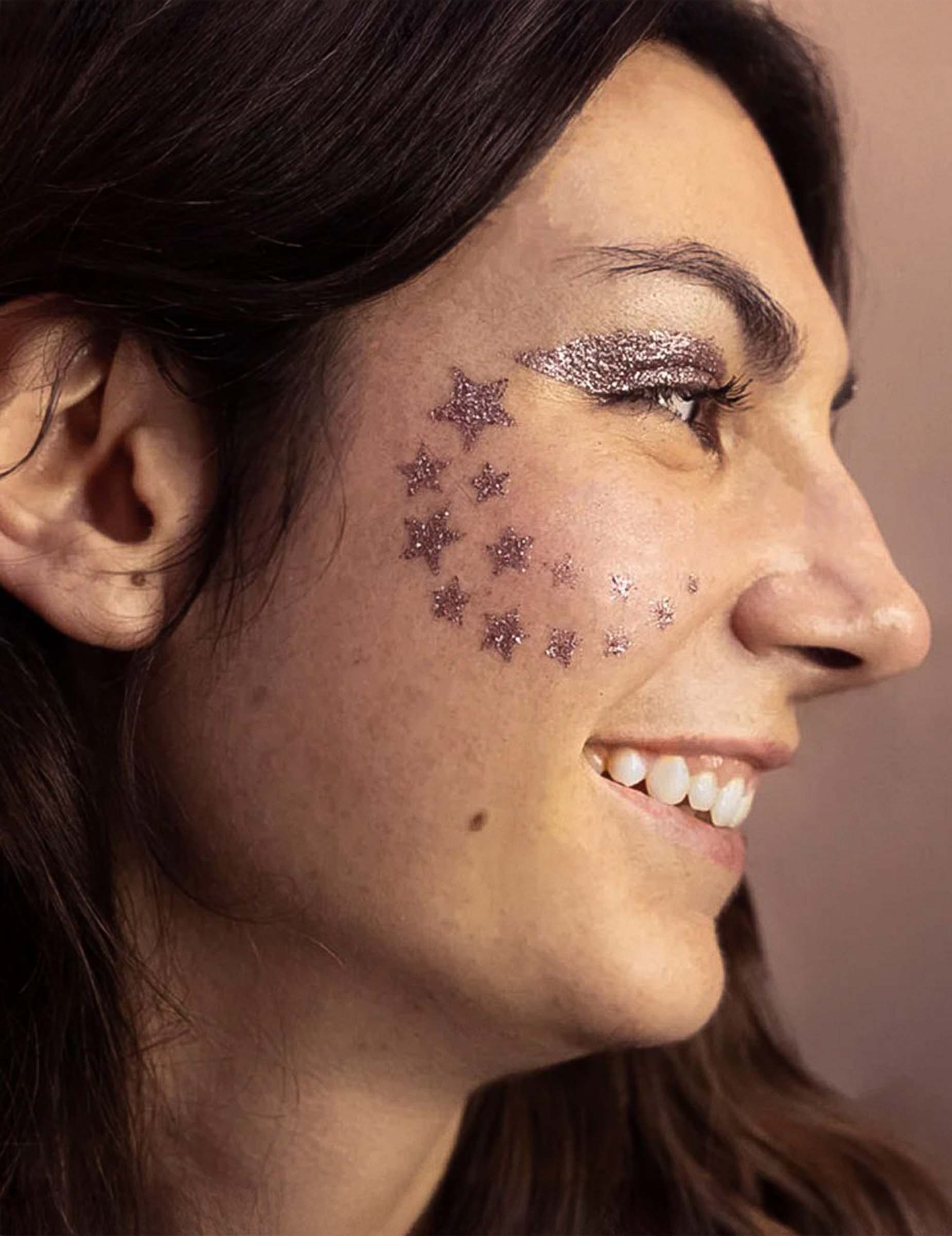 Ovom šablonom šminkom dodajte čarobni i svijetli dodir svom izgledu. Omogućuje vam lako stvaranje zvijezda različitih veličina, pjenušavih rafala i zvijezde za snimanje, savršene za čarobni učinak. Zahvaljujući praktičnom formatu, nudi brzu i preciznu nanošenje na licu ili tijelu. Idealno za karneval, kostimirane festivale ili umjetničku šminku, ova šablona za višekratnu upotrebu osigurava sjajan rezultat za svaku upotrebu!