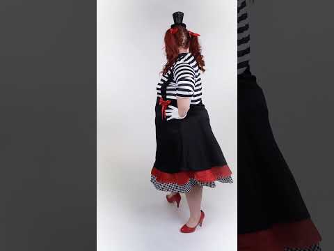 Ovaj kostim mimičarke u velikoj veličini za žene sastoji se od crne i crvene haljine te odgovarajuće leptir mašne.