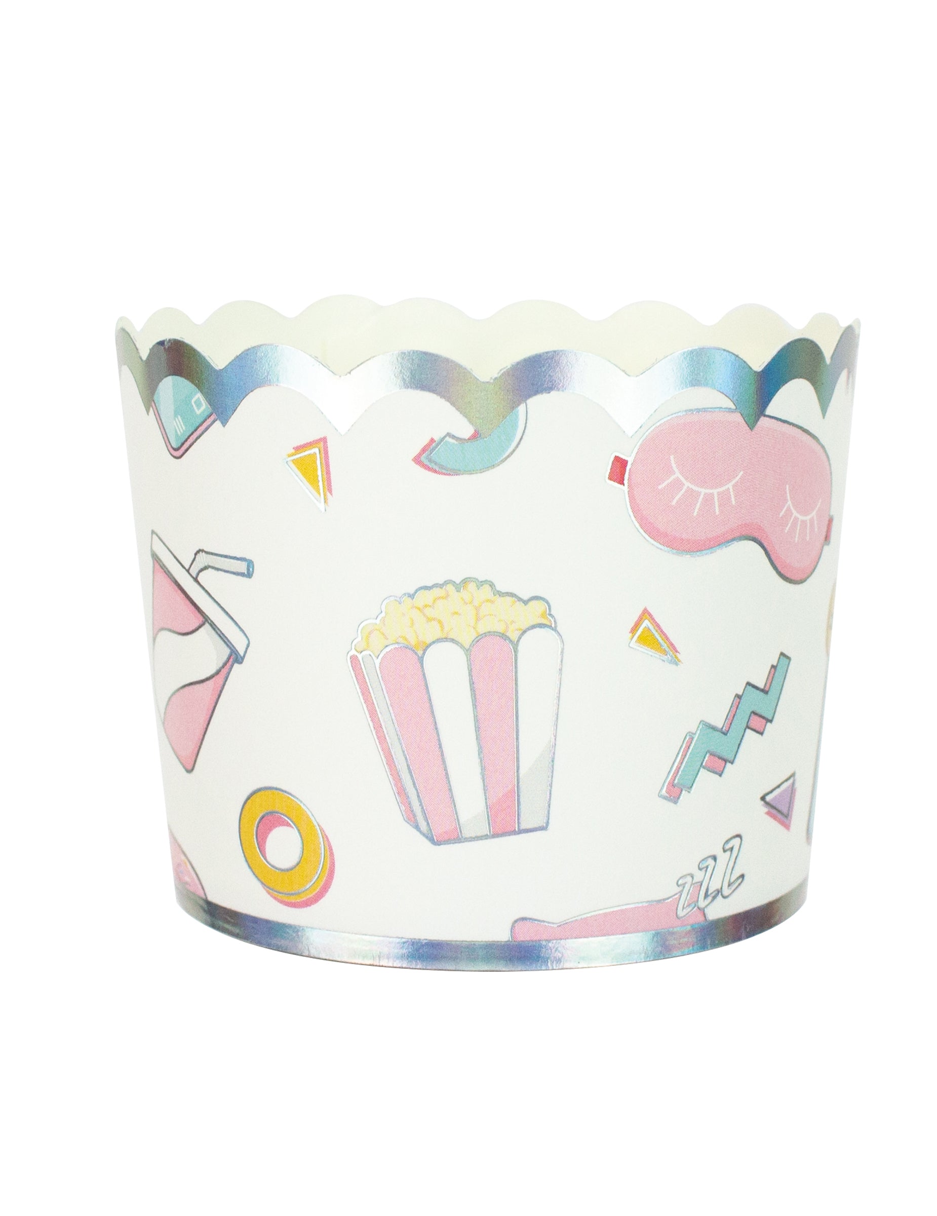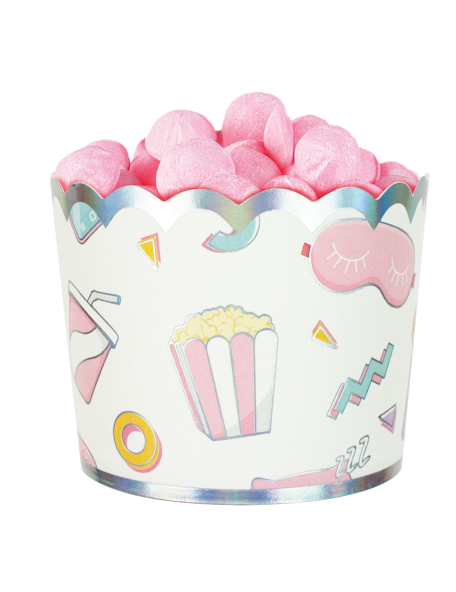 Unesite atmosferu kina na svoj događaj s ovim 8 malih staklenki za pidžama zabavuUkrašene originalnim motivima poput maski za spavanje i kokica, savršene su za opuštajuću večer. Prelijevajući se obrub dodaje moderan dodir sjaja, idealan za slatkiš. Njihova veličina posebno je dizajnirana za posluživanje vaših poslastica, a istovremeno uljepšavanje vašeg švedskog stola. Ovi dodaci savršeni su za rođendan, a prespavanje kod prijatelja ili međuobrok, osiguravajući prijateljski i elegantan trenutak.