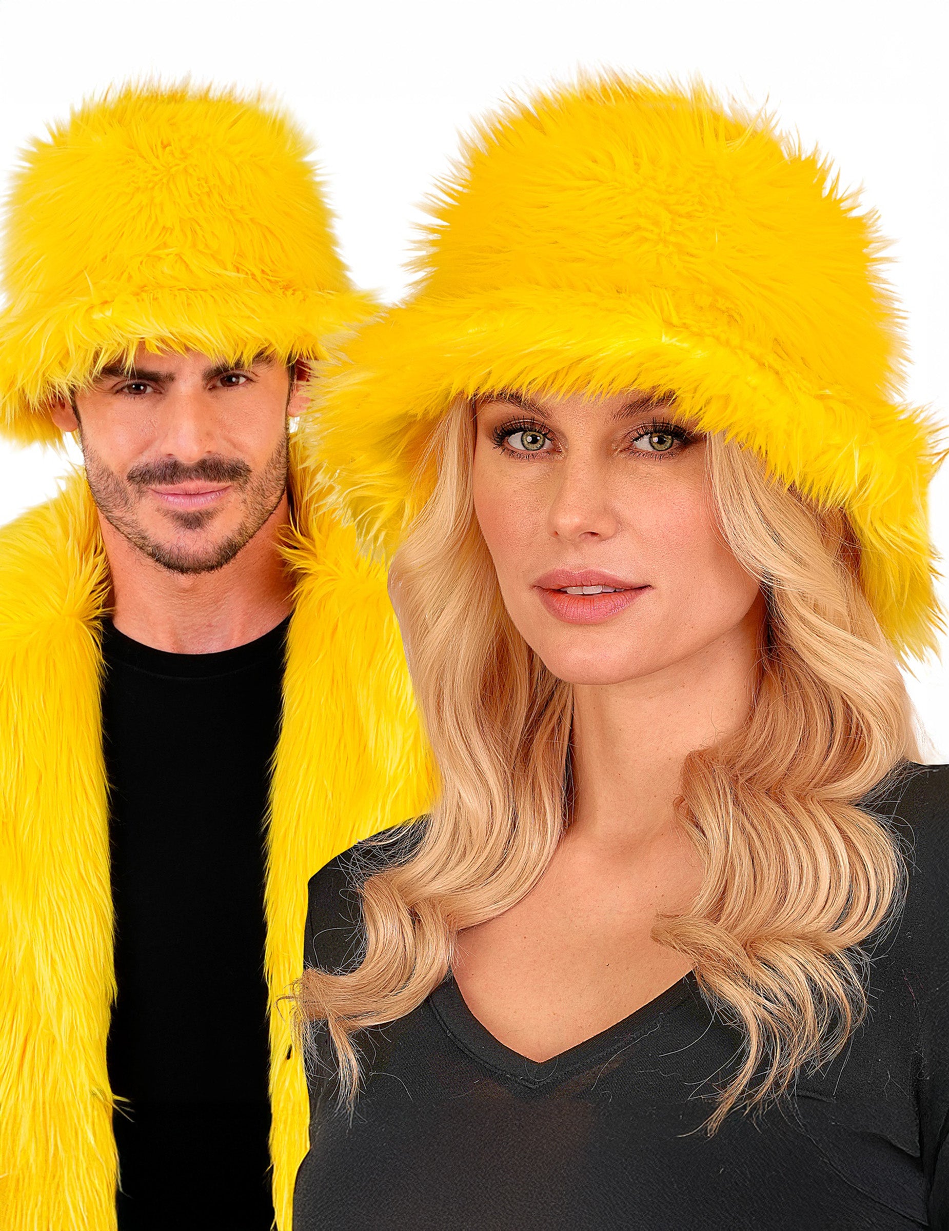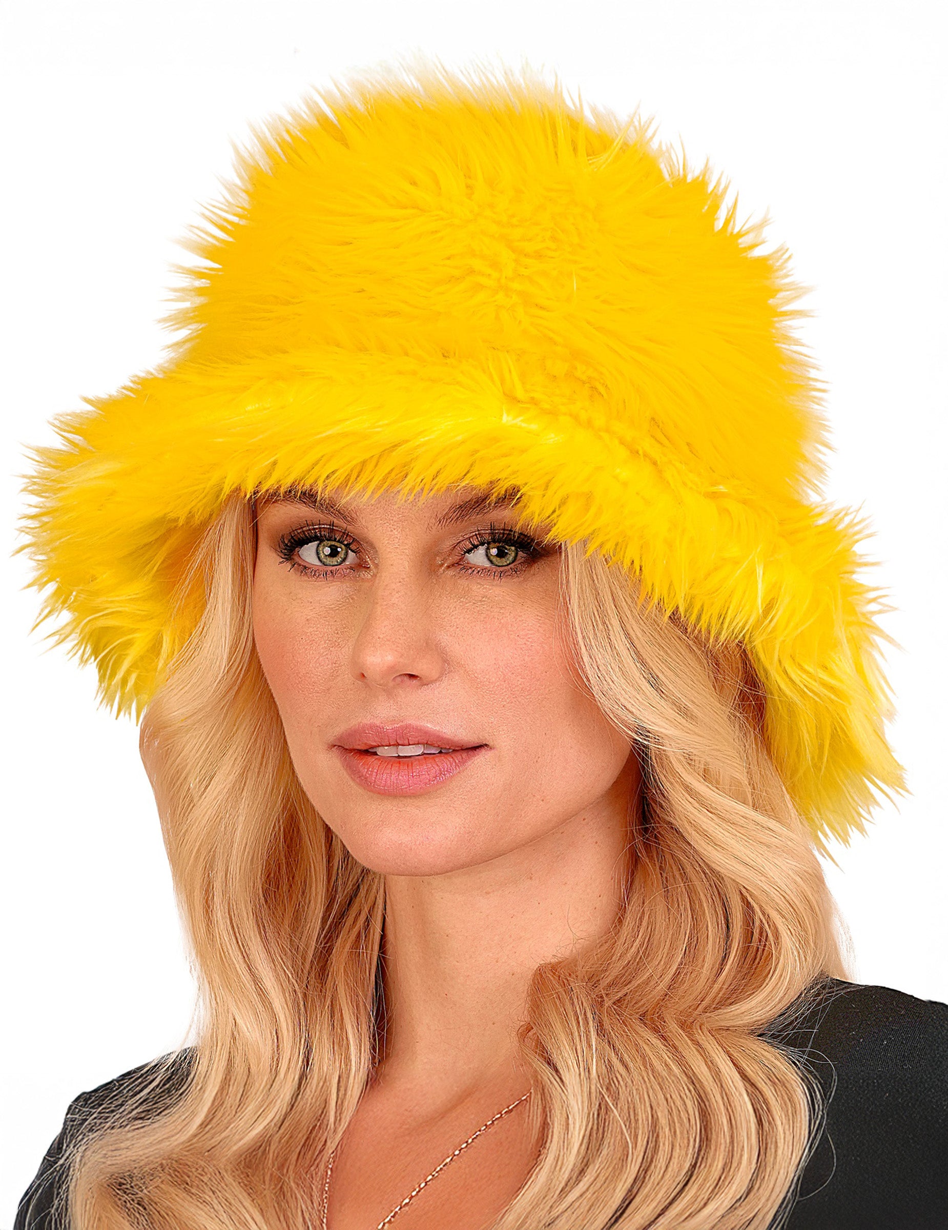 Ovaj žuti bob od lažnog krzna unosi svijetlu i živopisnu notu u vaš izgled. Njegova blistava boja i mekana tekstura čine ga zabavnim i upadljivim dodatkom. Idealan je za karneval, maskiranu zabavu ili šareni događaj, ovaj šešir će unijeti dašak sunca u vašu odjevnu kombinaciju.