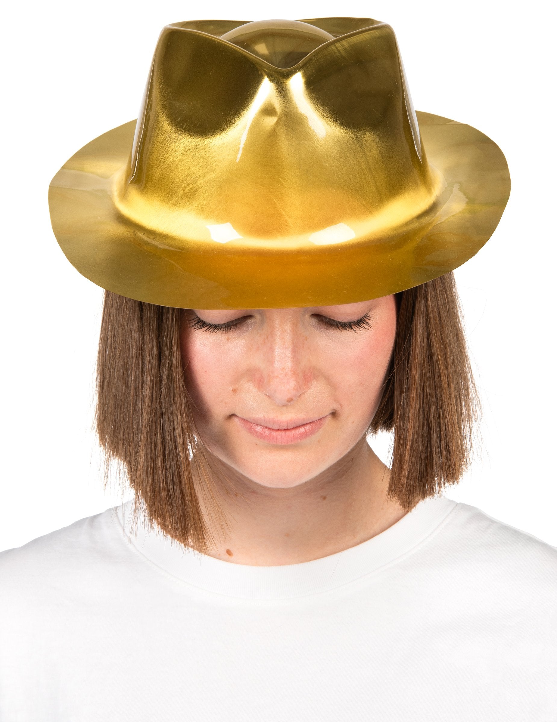 Ovaj sjajni zlatni gangsterski šešir izrađen je od lagane plastike s blistavim metalnim završetkom, savršen za istaknuće na zabavi. Svojim oblikom inspiriranim 1920-ima, evocira eleganciju kultnih likova iz svijeta mafije, ovdje reinterpretiranih u svečanoj, zlatnoj verziji. Savršen dodatak za upotpunjavanje gangsterskog kostima ili za dodavanje šik i zabavnog dodira karnevalu, kostimiranom balu ili zabavi s temom Gatsbyja.