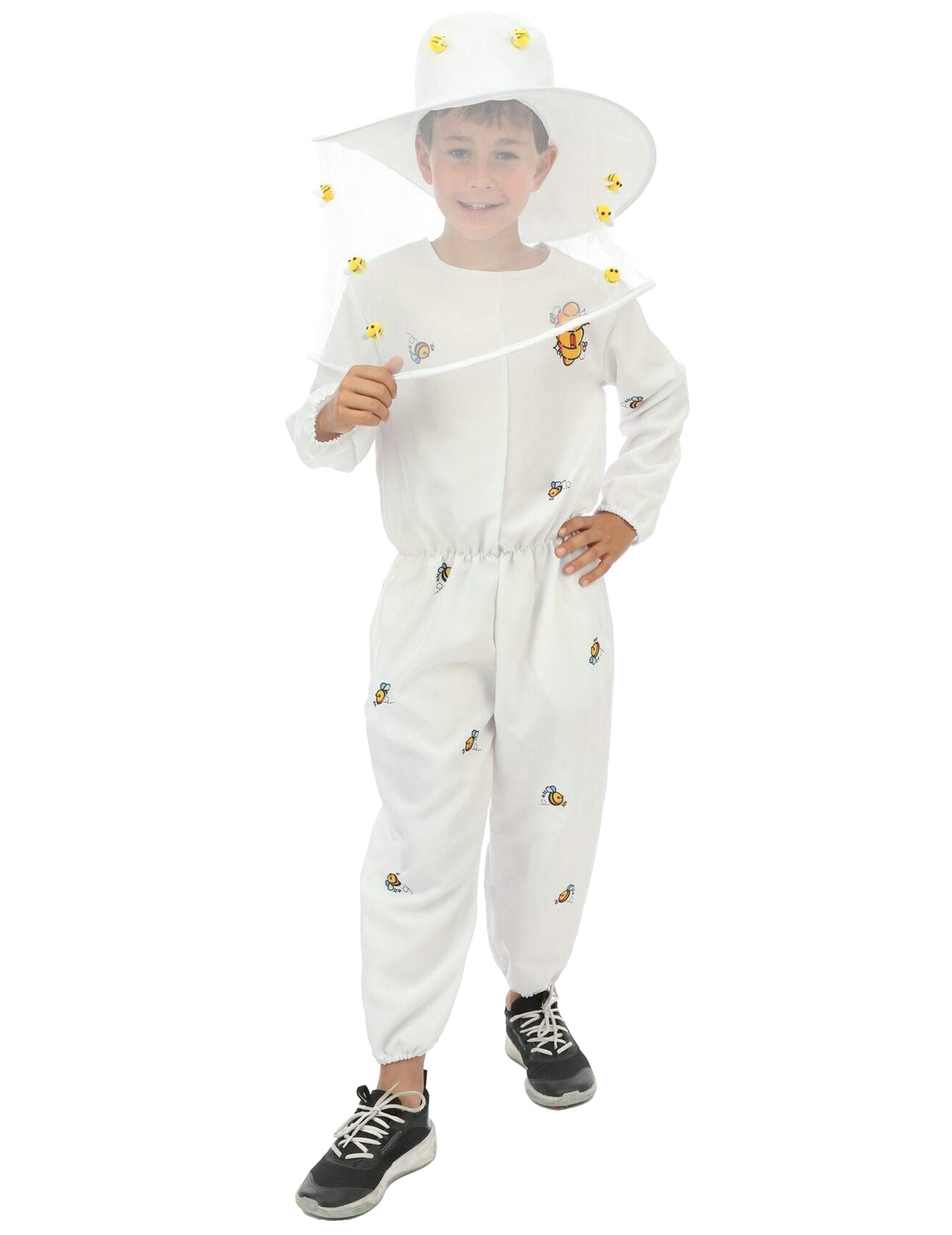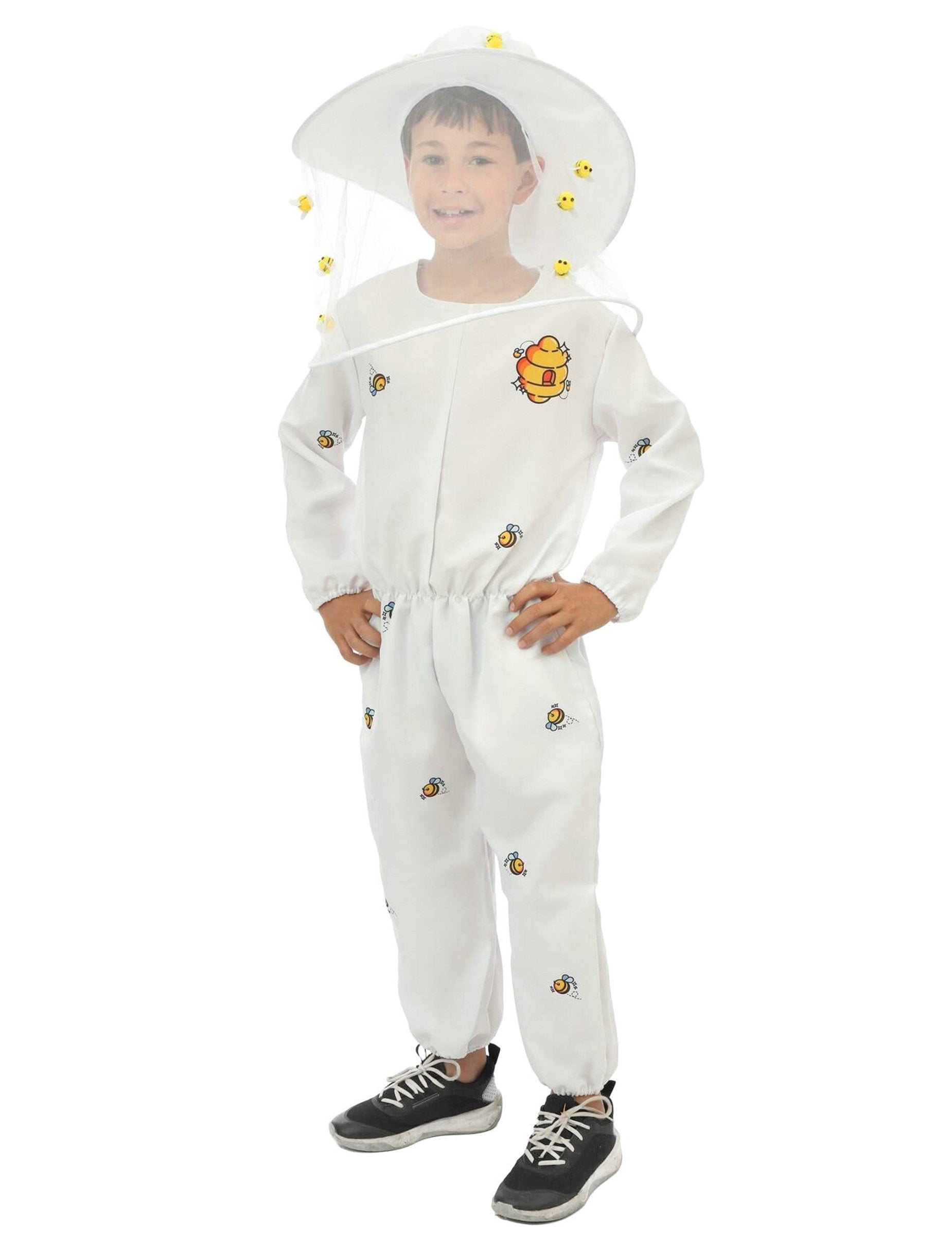 Ovaj dječji kostim pčelara sastoji se od šešira s velom i bijelog kombinezona za vjerni izgled pravih čuvara košnica.