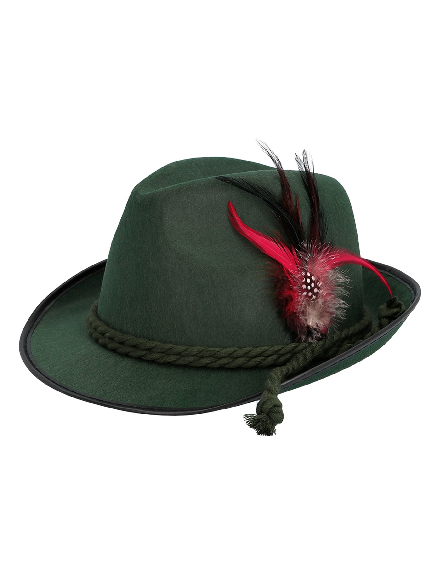 Ovaj tamnozeleni bavarski šešir za odrasle je osnovni dodatak za dovršavanje tradicionalnog njemačkog odijela. Napravljen od tkanine s efektom od filca, ukrašen je pletenom vrpcom u podnožju i prilično crvenim i narančastim pljuskom sa strane, istinit bavarskom stilu. Idealan za karneval, folklorni festival ili tematsku večer Oktoberfesta, ovaj će šešir donijeti završni dodir vašem izgledu!