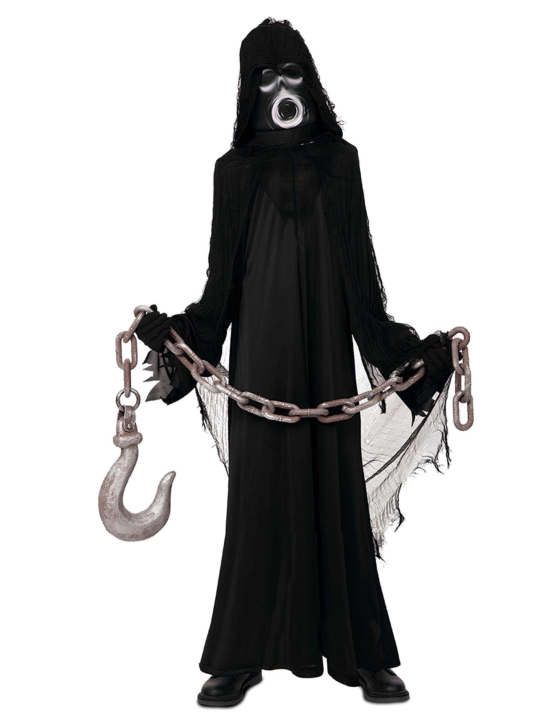 Ce déguisement de spectre pour enfant comprend une tunique noire longue, une cape légère effet déchiré et une coiffe intégrée qui forme une tête fantomatique au regard vide et à la bouche ouverte. La tunique ample recouvre tout le corps et crée une silhouette mystérieuse. Les manches sont longues et larges, et la cape en voile noir ajoute une touche effrayante avec ses bords irréguliers. La coiffe complète le déguisement en donnant l’illusion d’un visage de spectre sorti tout droit d’un cauchemar. Un costume parfait pour Halloween ou pour faire frissonner les amis lors d’une soirée déguisée.