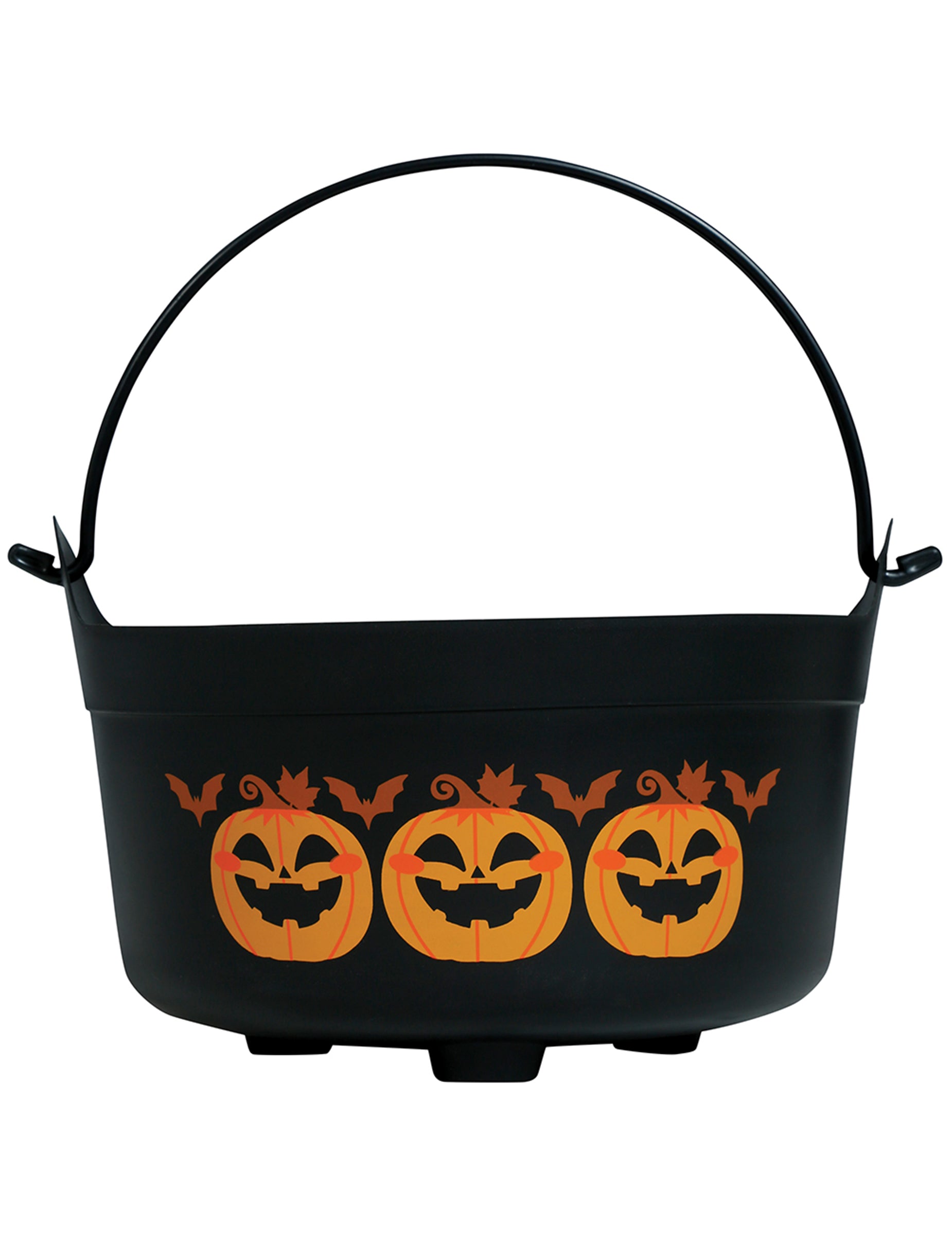 Ce chaudron noir d’Halloween mesure environ 24 x 23 x 15 cm et est décoré de citrouilles orangées souriantes entourées de petites chauves-souris. Avec sa anse pratique, il est parfait pour transporter ou présenter les bonbons le soir d'Halloween. Idéal pour les enfants en quête de friandises ou pour compléter une décoration de sorcière ou de fête effrayante !