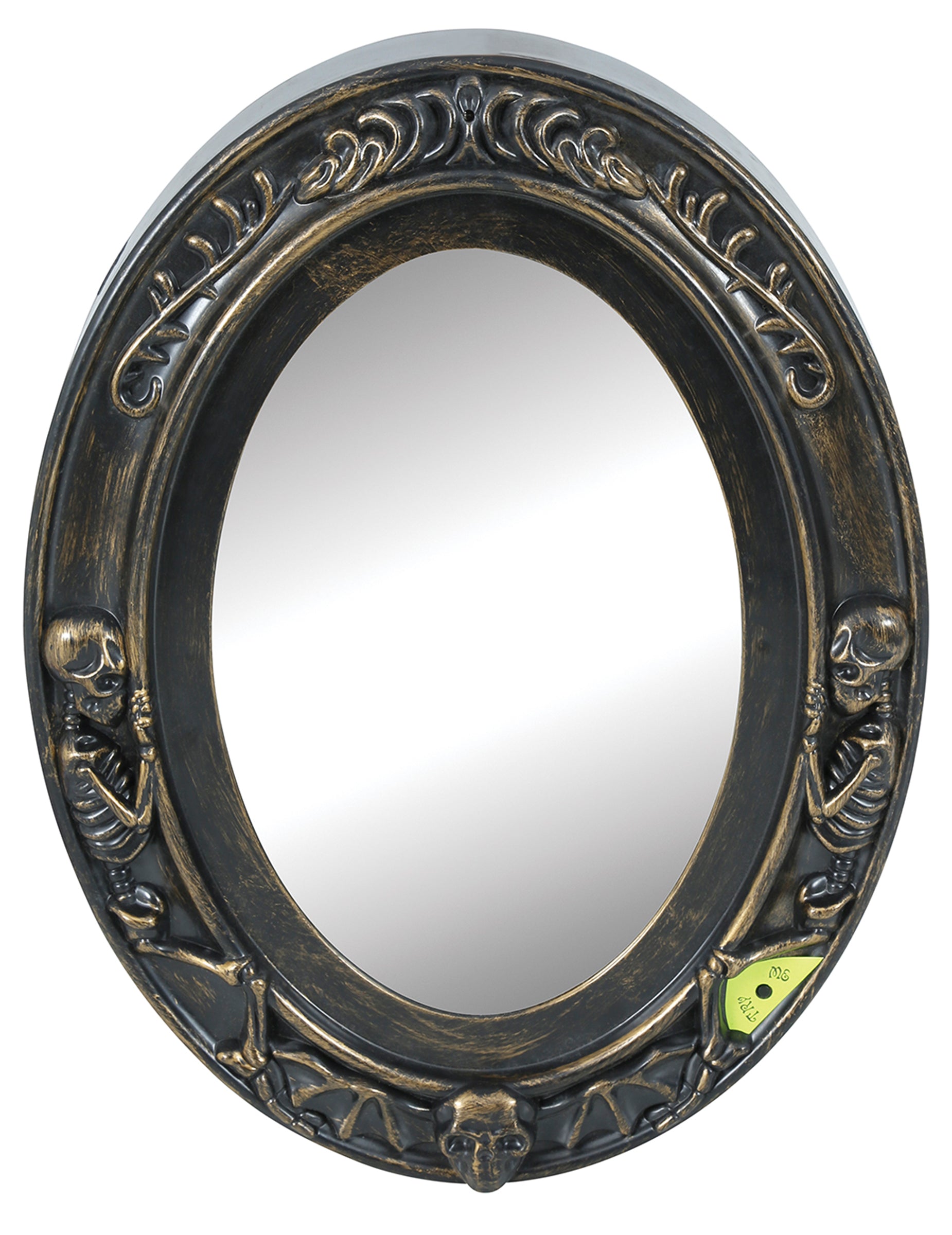 Ovo lažno ogledalo za Noć vještica izgleda kao da je upravo izvučeno iz stare napuštene kuće. Njegov crni izlizani okvir, ukrašen malim reljefnim motivima, privlači pogled, ali prava iznenađenja dolaze kad mu se približite. Na staklu se iznenada pojavljuje lubanjsko lice, praćeno crvenim svjetlosnim efektima i jezivim zvukovima.