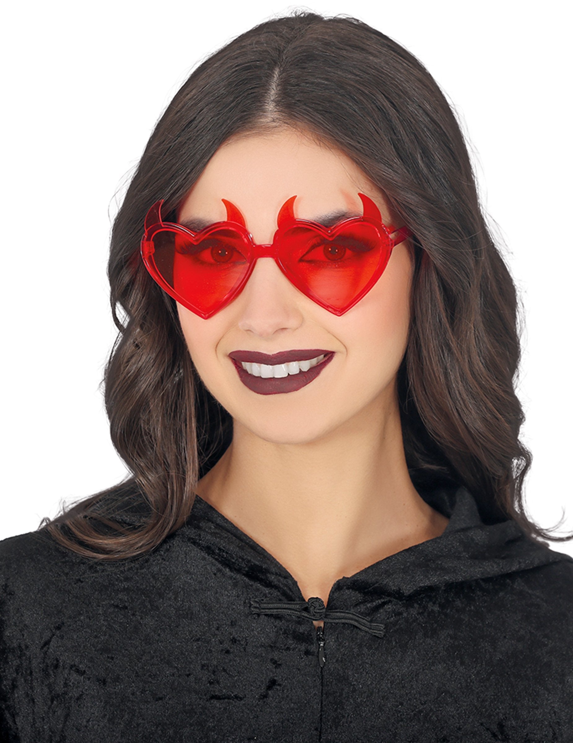Ces lunettes cœurs rouges diaboliques pour adulte affichent une monture rouge vif en forme de cœur surmonté de petites cornes, pour un effet espiègle et démoniaque. Les verres teintés assortis renforcent leur look audacieux, idéal pour transformer un simple accessoire en élément central du déguisement. Parfaites pour Halloween, ces lunettes sont le détail idéal pour compléter un costume de diablesse, de créature tentatrice ou pour jouer la malice avec style.