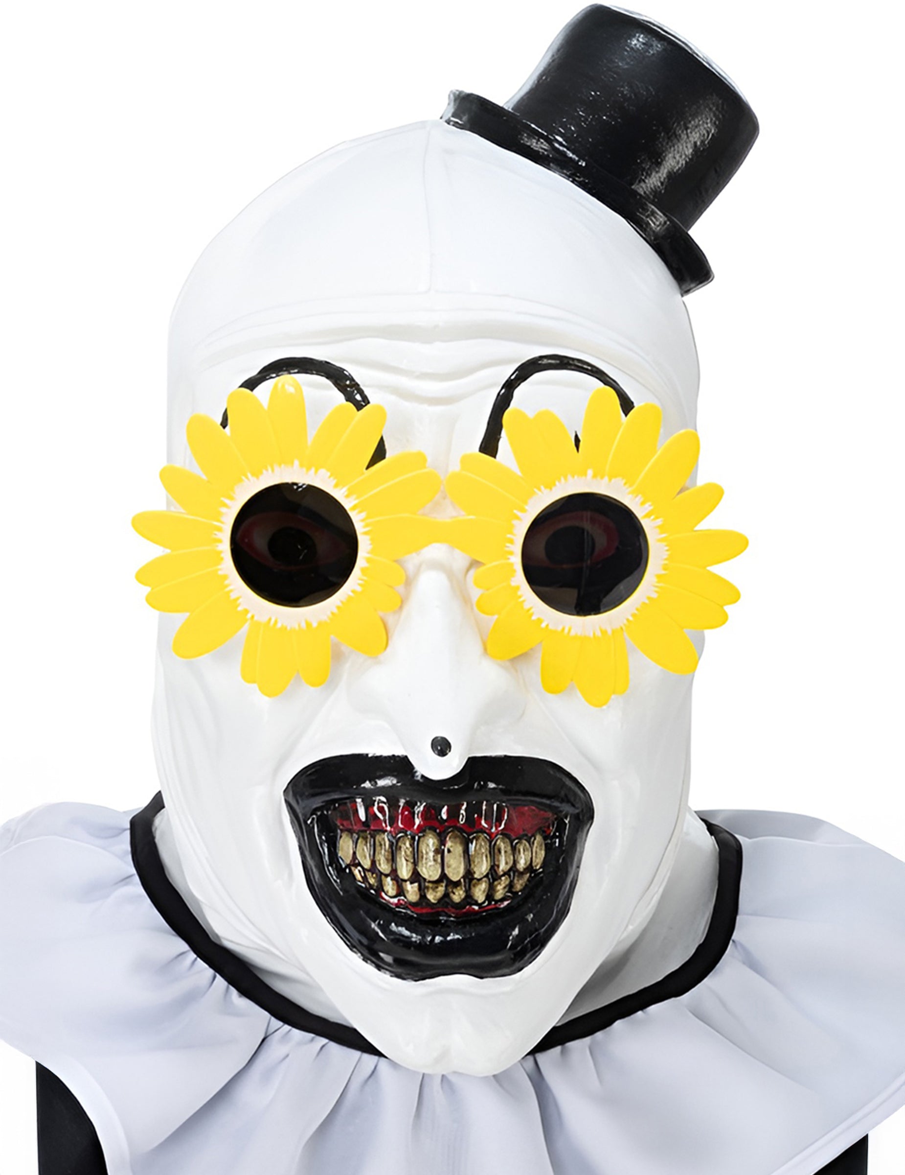 Ces lunettes fleurs jaunes Terrifier pour adulte sont directement inspirées d’une scène culte du film Terrifier, dans laquelle le clown Art affiche un sourire inquiétant derrière ces lunettes décalées. Avec leurs grands pétales jaunes autour des verres noirs, elles donnent une apparence faussement innocent qui cache une intention bien plus sombre. Ce modèle emblématique est devenu l’un des symboles les plus marquants du personnage. Parfaites pour compléter un déguisement fidèle au film, elles créent un effet visuel fort, à la fois drôle et dérangeant. porter pour Halloween, une soirée à thème horreur ou un événement costumé, ces lunettes deviendront un clin d'œil évident pour les fans du film.