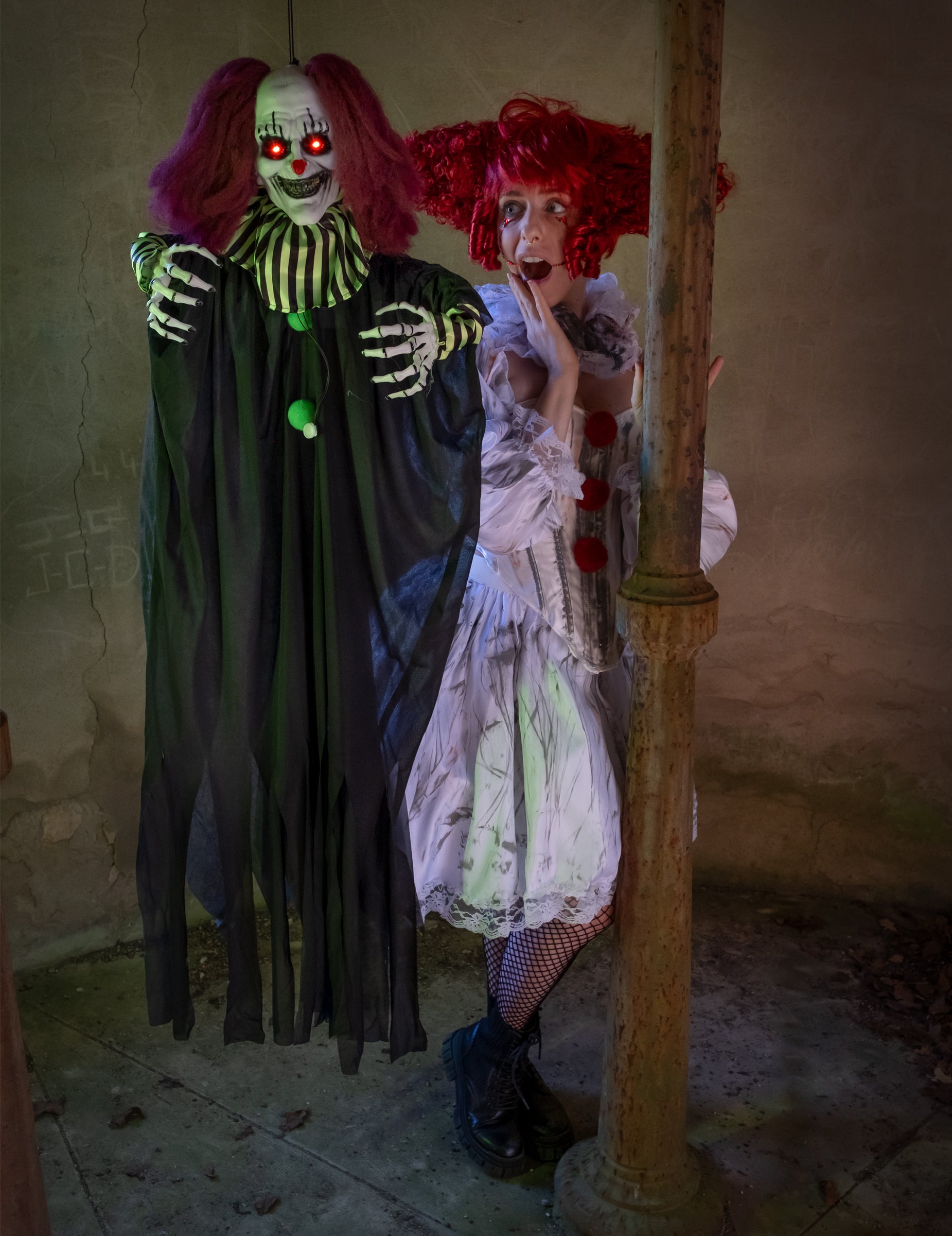 Animirani ukras zastrašujući viseći klaun 130 cm