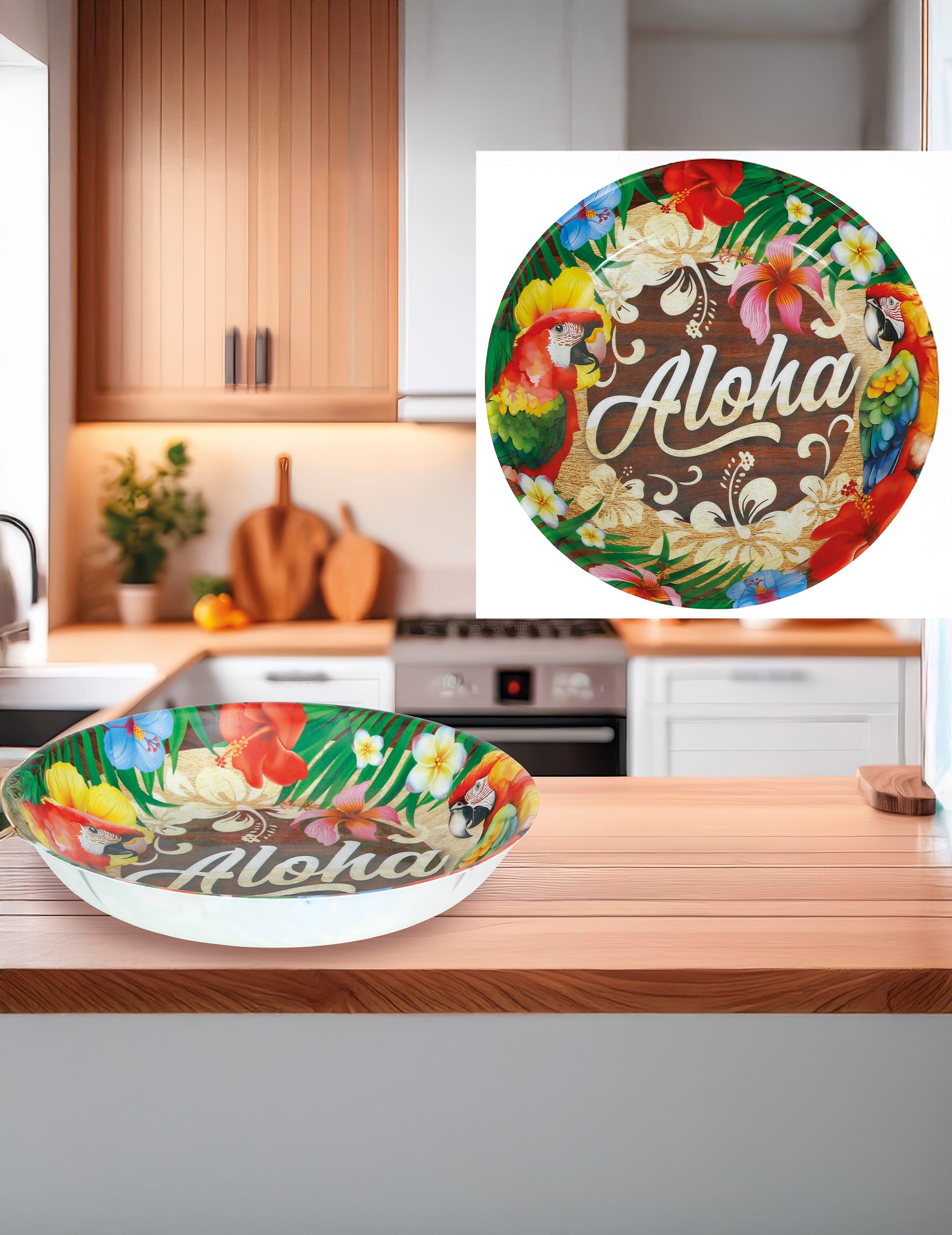 Ova plastična zdjela od 27 x 9 Aloha Hawaii cm donijet će egzotični dodir u sve prezentacije vašeg stola. Ukrašeni šarenim papiga, tropskim lišćem i živopisnim cvjetovima, lagan je, praktičan i savršen za posluživanje predjela, salata ili voća sa sunčanom notom. Idealno za ljetnu zabavu, obrok s otokom ili prijateljski vrtni zabava.