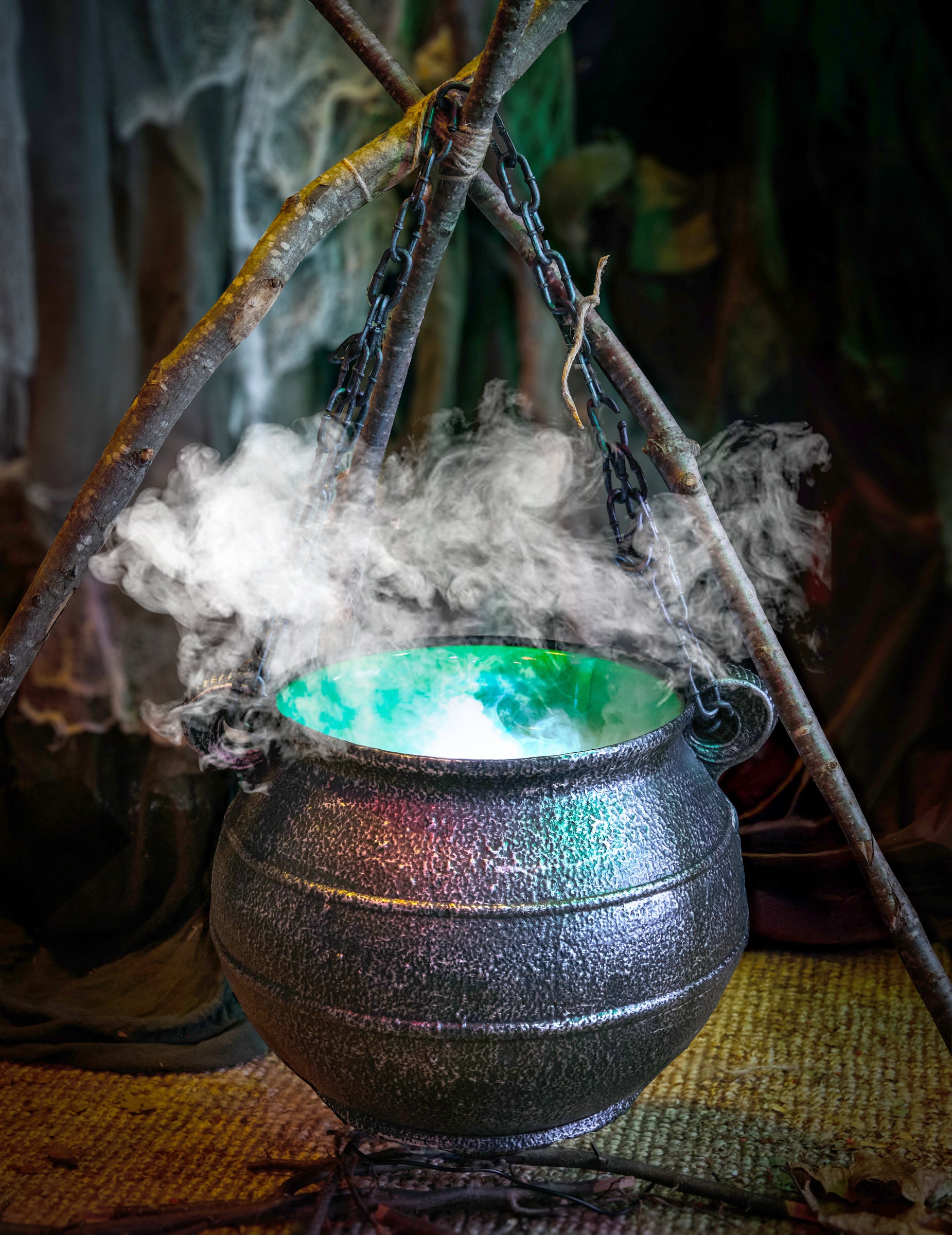 Ovaj vještičji čajnik s ventilatorom za zamagljivanje 45 cm Ovo je savršen dodatak za stvaranje nadnaravne atmosfere u vašem dekoru za Noć vještica. S efektom dima i jezivim zelenim sjajem, ovaj teksturirani crni kotao izgleda kao da je došao ravno iz vještičje jazbine. Ugrađeni raspršivač stvara gustu, hladnu maglu koja se diže iz kotla, dok unutarnje svjetlo baca jeziv sjaj simulirajući mjehurićavi napitak. Savršeno kao dodatak sceni s vješticom, knjigom čarolija ili metlom. Jednostavno ulijte vodu u zelenu bazu. Radi na utičnici izmjenične struje od 220-240 V za kontinuiranu, neprekidnu difuziju magle.