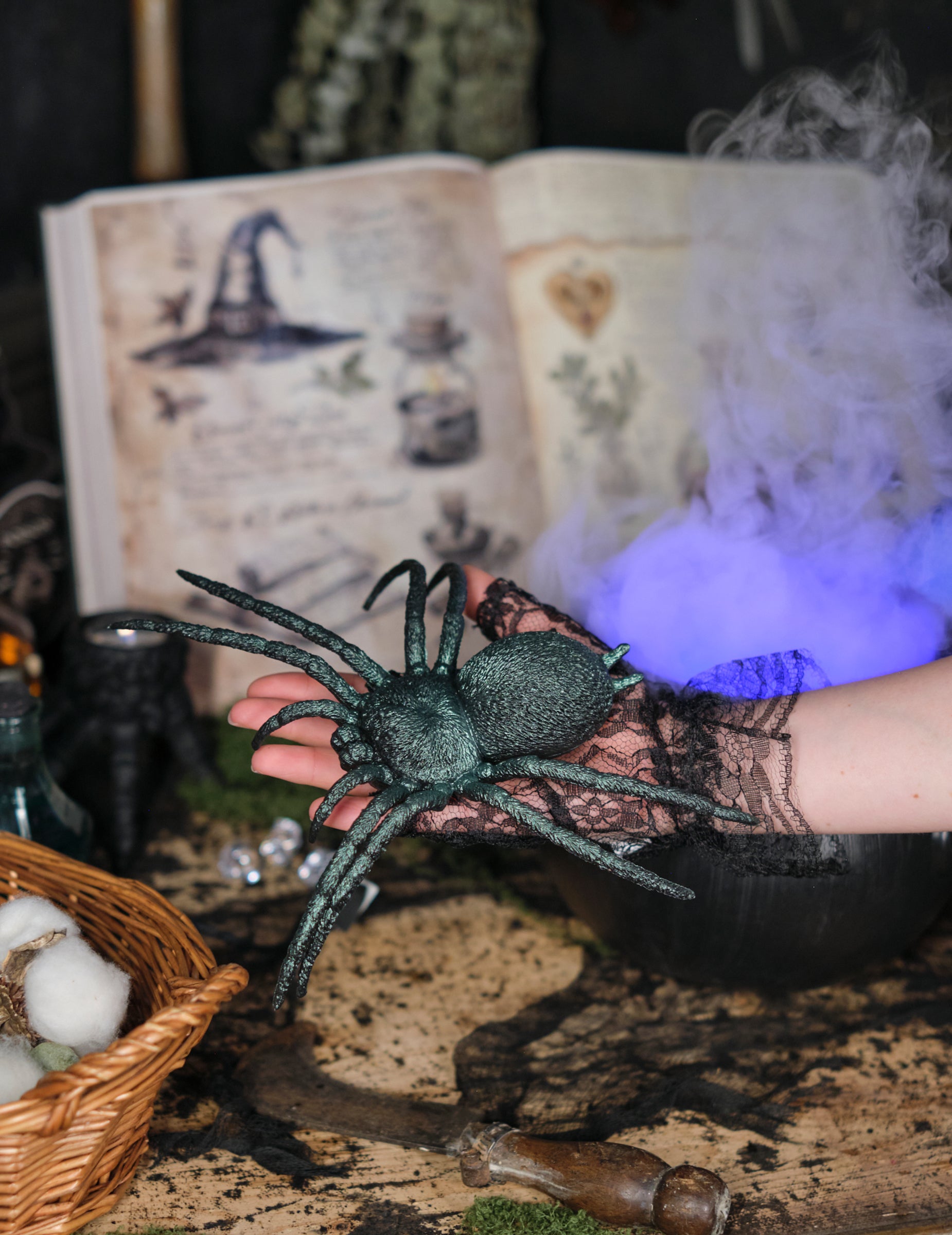 Ovaj iridescentni zeleni plastični pauk 23 cm Savršen je za dodavanje sablasnog i vizualno intrigantnog dodira vašem dekoru za Noć vještica. Mjerenje 23 x 17,5 x 3,8 cm, Može se postaviti na stol, zid ili u srcu ukrasnog platna. Njegova teksturirana površina i metalik zelena refleksija daju mu izgled koji je jednako tajanstveni koliko i prijeteće. Savršeno za dovršavanje svemira vještica, groblja ili monstruoznih insekata, privlači oko dok sije sumnju. Jednostavan dekorativni element, ali izuzetno učinkovit da uronite svoj prizor u pausku atmosferu.