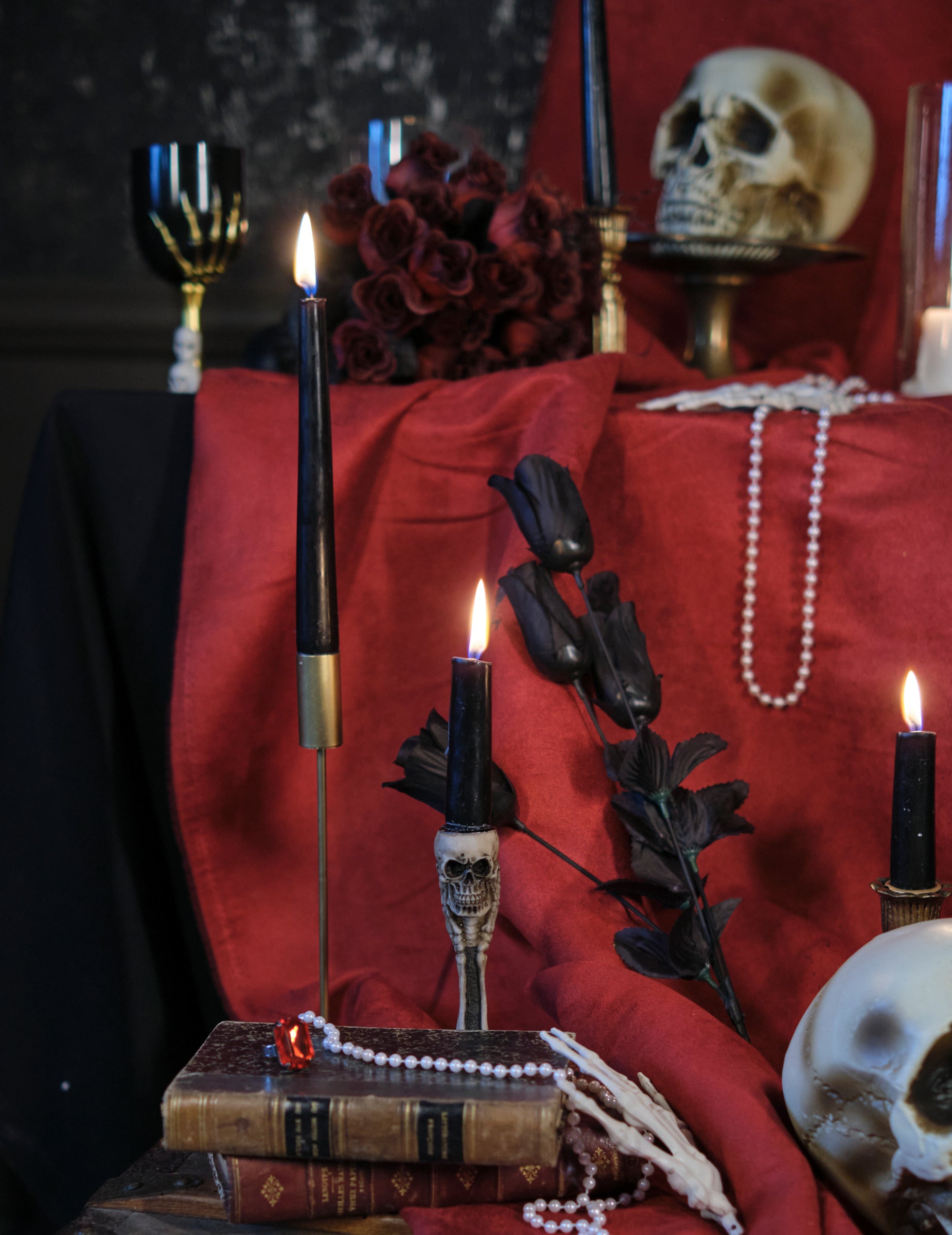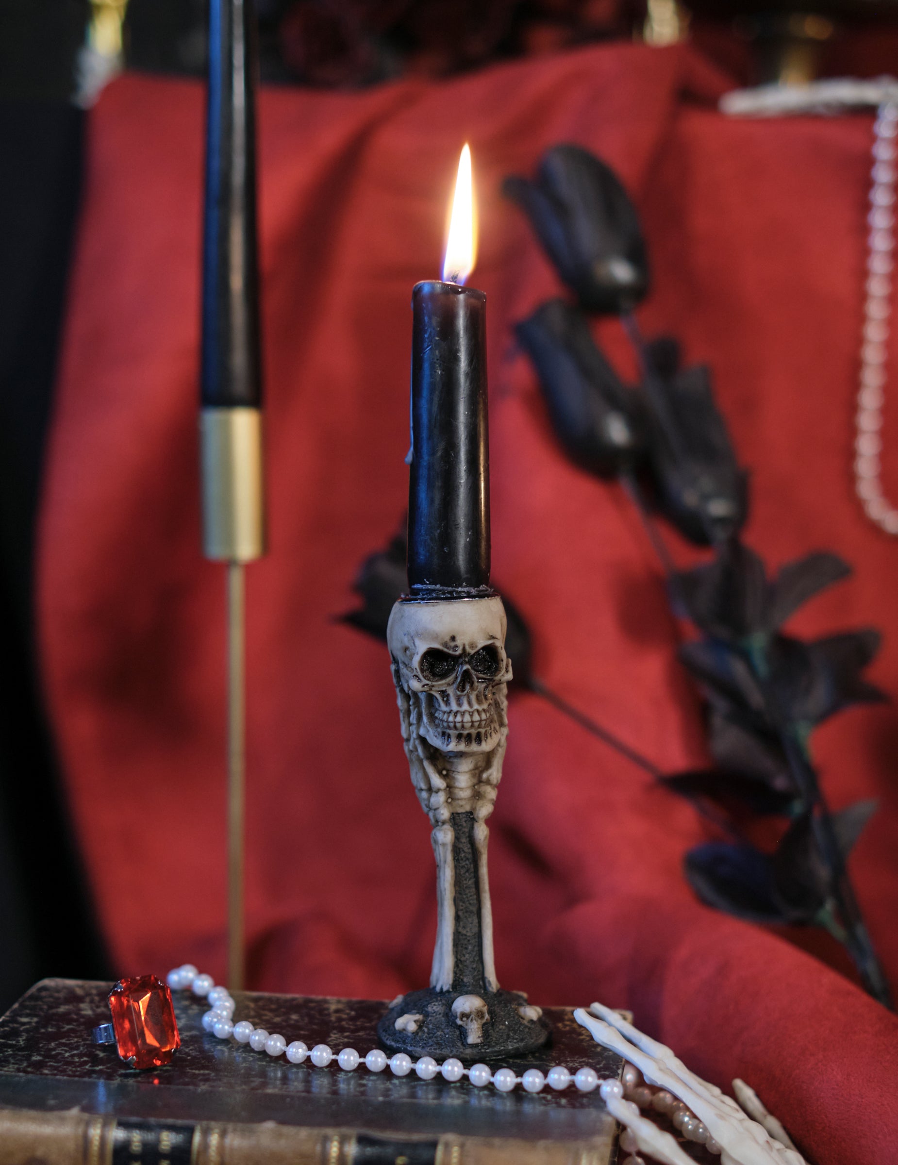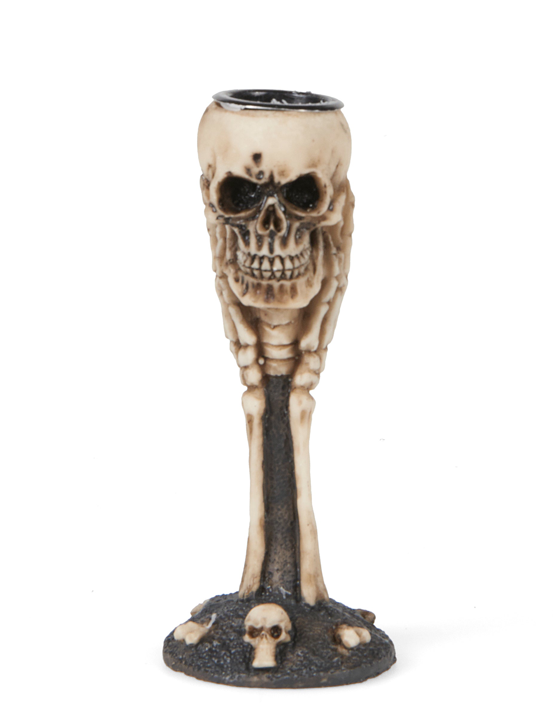 Ovaj držač svijeća u obliku lubanje i kostiju od 12,5 cm Donosi tamni i originalni dodir vašem dekoru, savršen za ojačanje tmurne ili gotičke atmosfere tijekom vaših događaja. Napravljen od čvrste smole, mjeri 5 x 12,5 cm i ima realnu kostiju, s isklesanom lubanjem na vrhu i nekoliko malih kostiju u podnožju baze. Detaljne završne obrade i ostarjela završna obrada daju mu izgled koji je i sablasan i dekorativan. Savršeno za sablasni Halloween, Ghoulish Banket stol ili progonili dekor ljetnikovca.