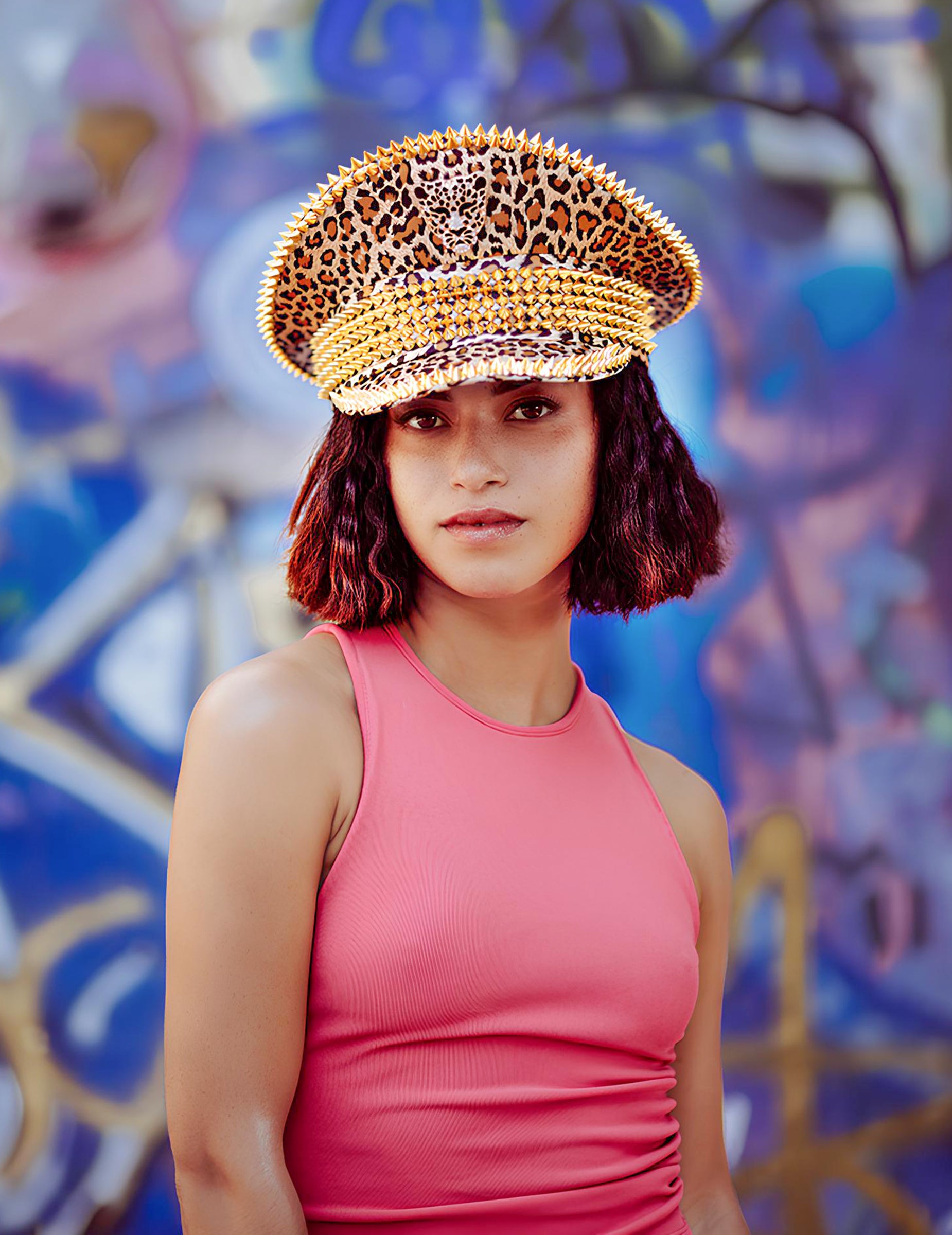 Affichez un style audacieux avec cette casquette à imprimé léopard rehaussée de clous dorés étincelants. Son design unique allie luxe et robustesse, apportant une touche glamour et tendance à votre tenue. Confortable et facile à porter, elle est l’accessoire parfait pour compléter un costume, une soirée à thème ou simplement pour affirmer un look original et décalé.