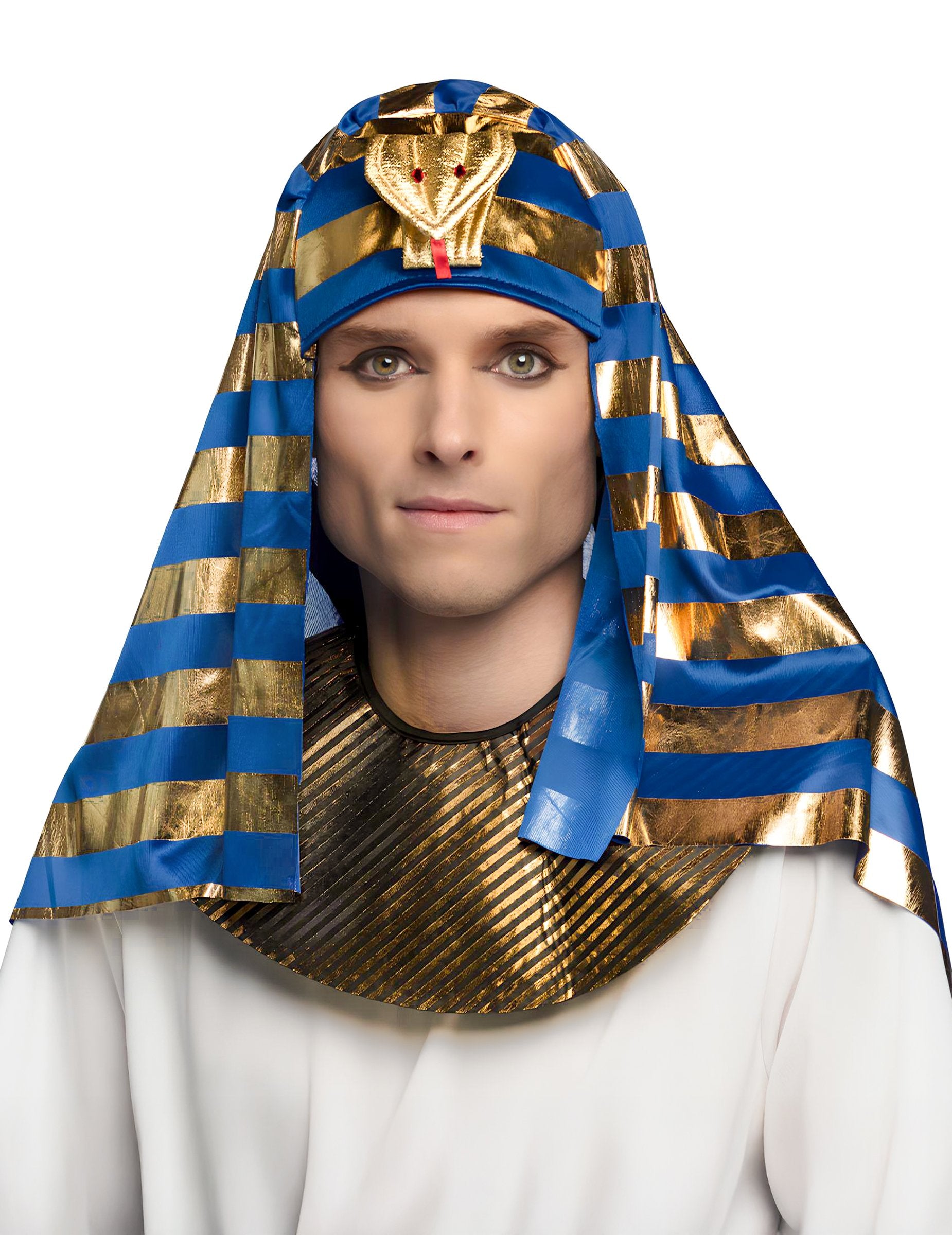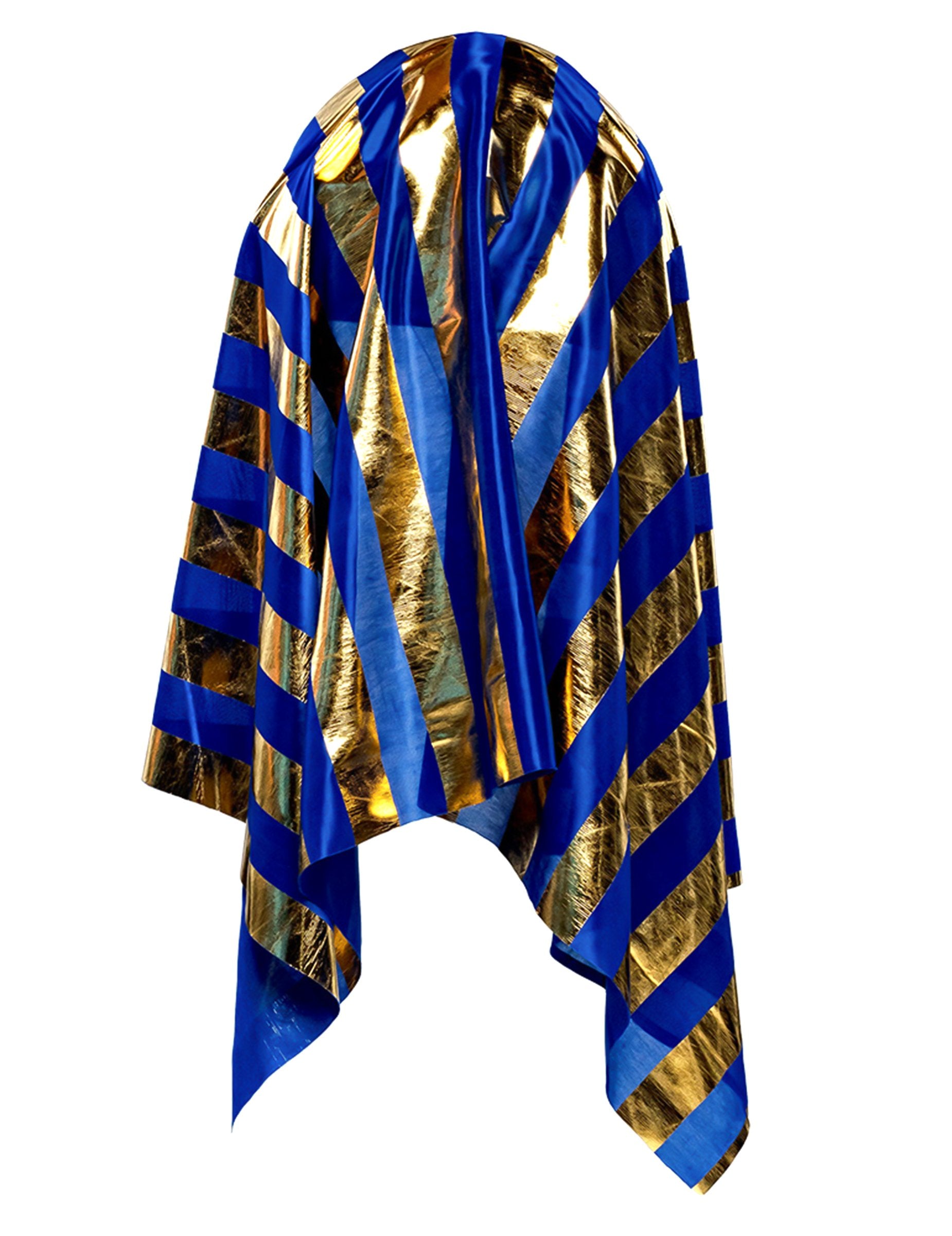 Preobrazite se u pravog egipatskog vladara s ovim prekrasnim faraonskim pokrivalom za glavu s jarkim plavim i zlatnim trakama. Ukrašen zlatnom kobrom na čelu, dodaje veličanstven i autentičan dodir vašoj odjeći. S promjerom od približno 58 cm, Dizajniran je tako da udobno pristaje većini odraslih. Idealan je za upotpunjavanje egipatskog kostima, a bit će savršen za tematske zabave, karnevale, povijesne rekonstrukcije ili kostimirane zabave.