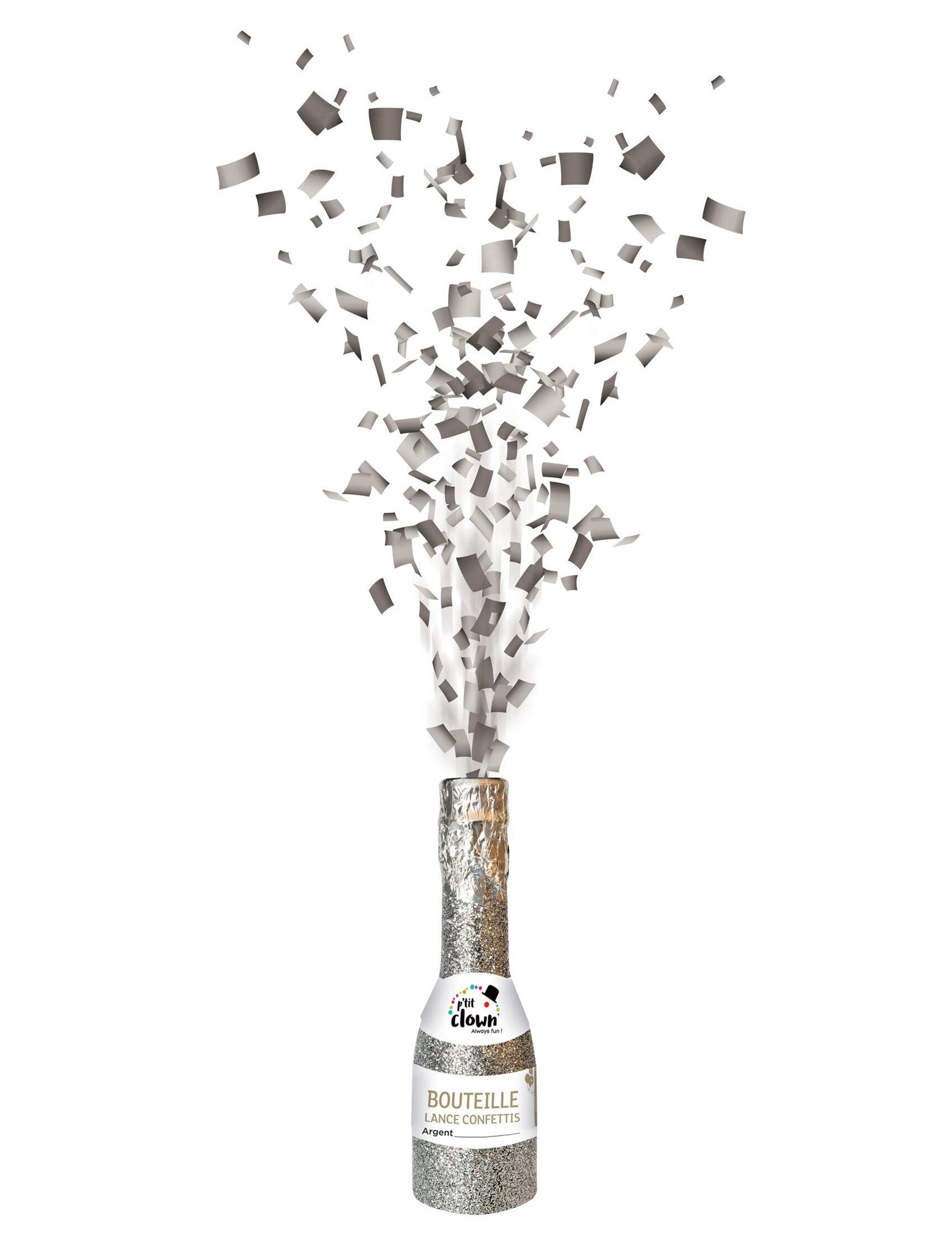 Bouteille argentée canon à confettis 16 cm